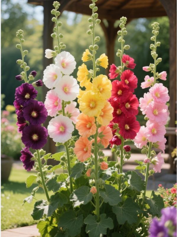 Watering Needs: Water regularly but avoid overwatering; hollyhocks prefer moderately moist soil.