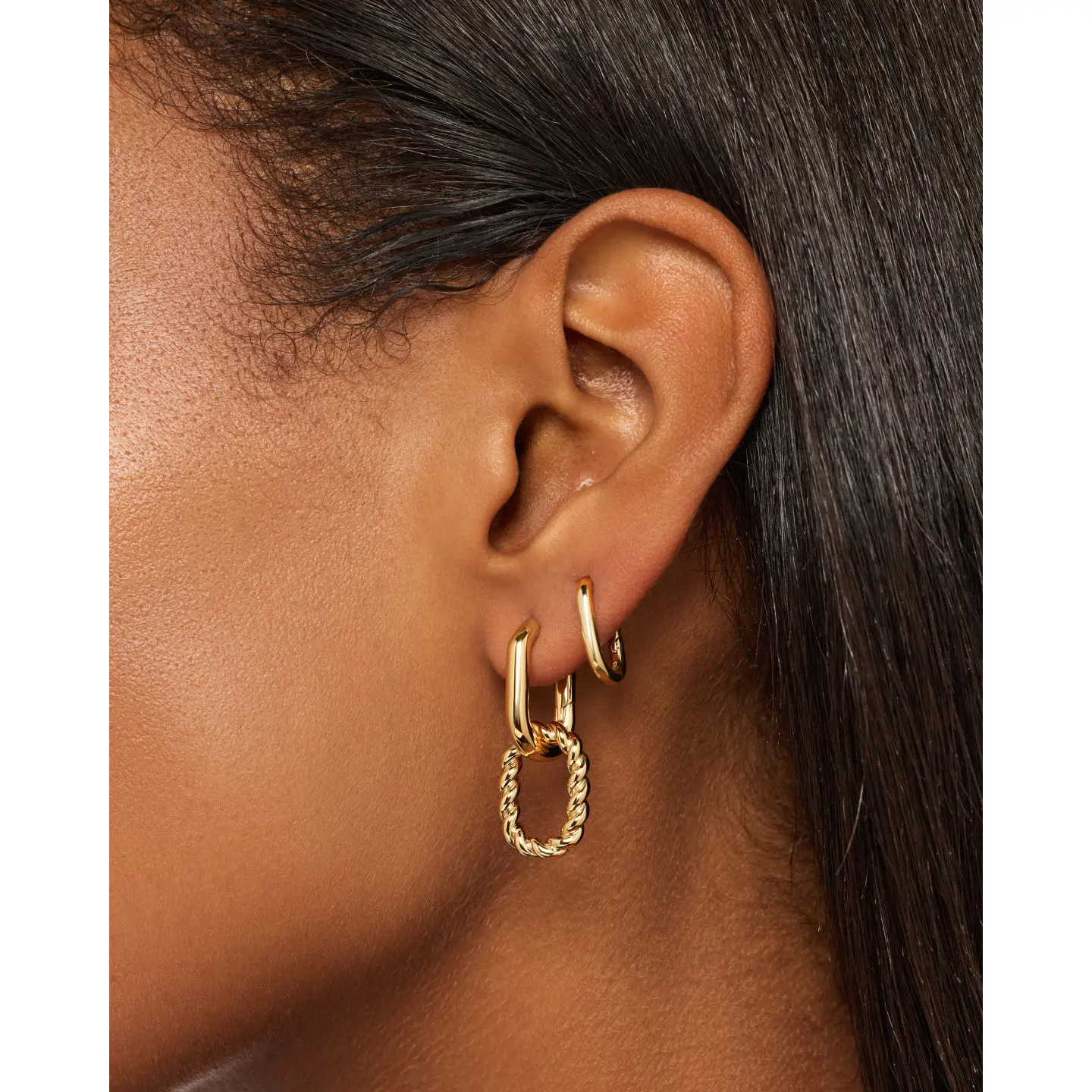 I’m genuinely so obsessed with these earrings. They are stunning, I wear them pretty much everyday. I also sometimes take off the bottom hoop and just wear the single hoop and they are really pretty like that too. Basically 2 earrings in 1. Lots of compliments on them too!