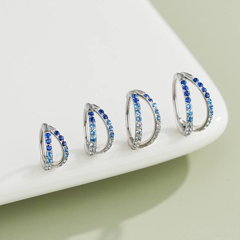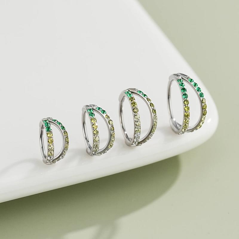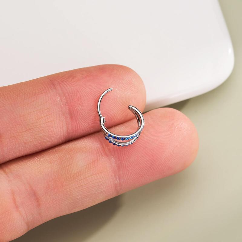 This 20G double hoop nose ring is a unique piece that combines the allure of gradient hues with the classic elegance of double hoops. The gradient-colored cubic zirconias transition seamlessly from one shade to another, creating a mesmerizing visual effect.