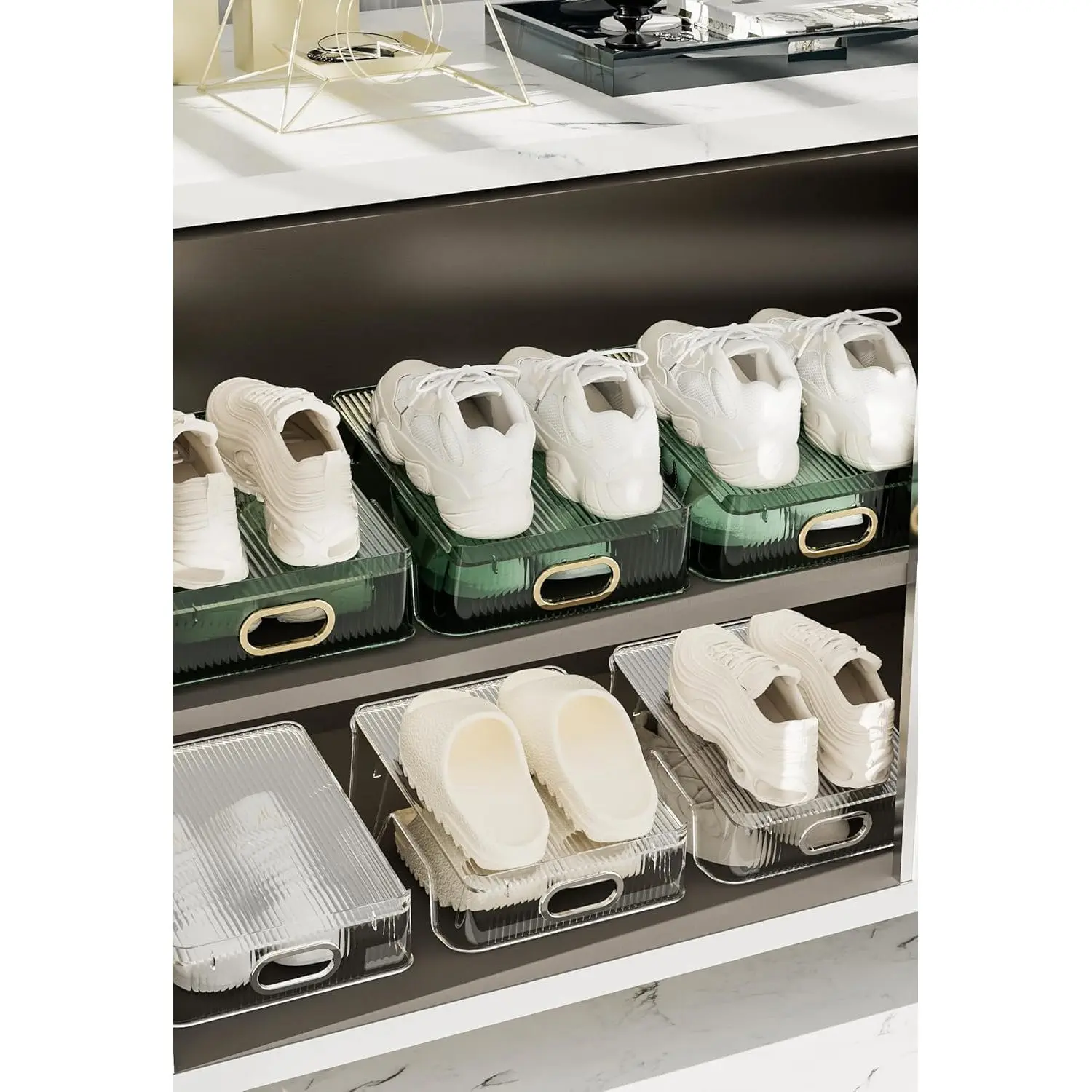 ·Our shoe holder is specifically designed with top flaps at both sides and behind, along with little bumps on the surface to prevent the upper shoe from slipping off, keeping your space tidy and neat.