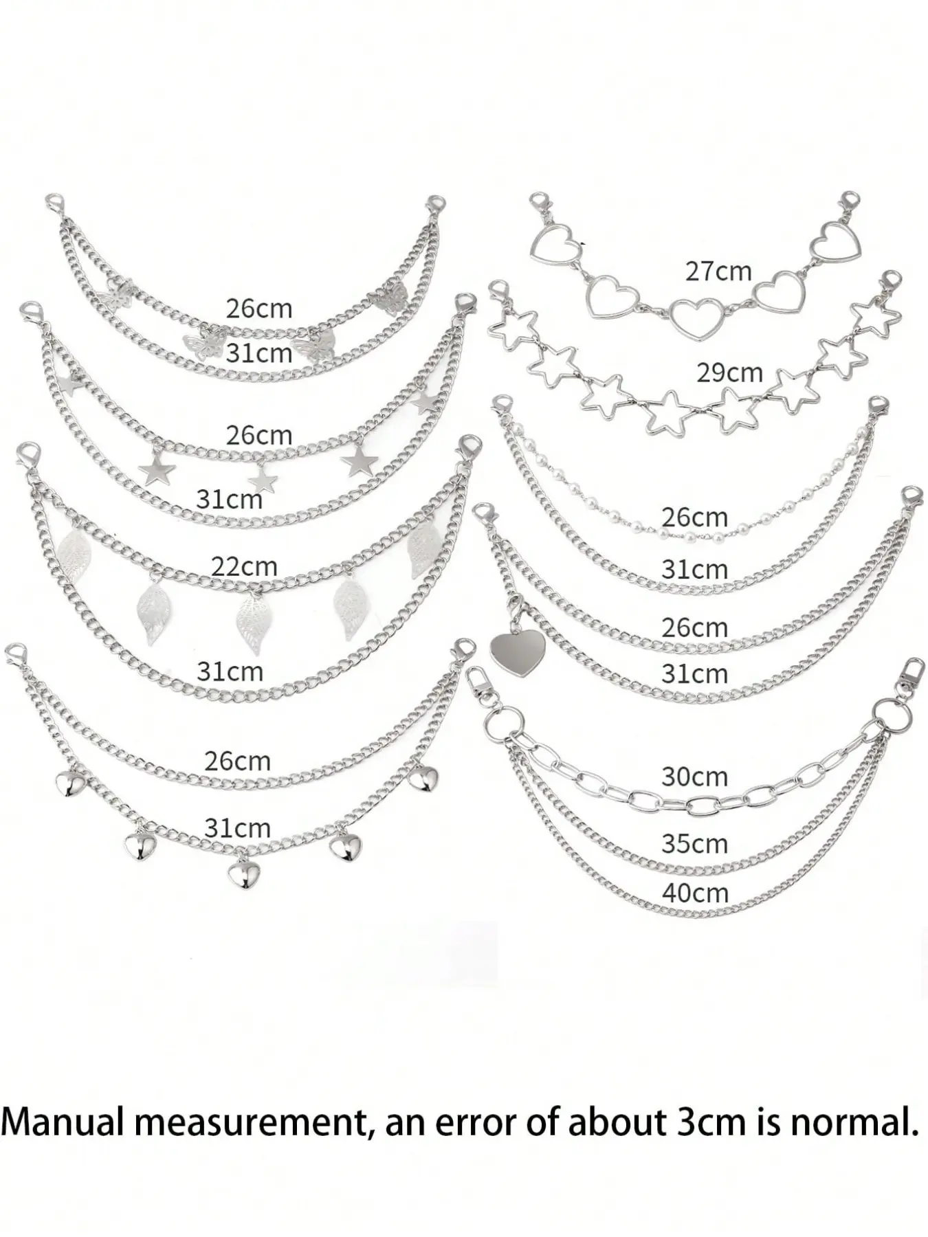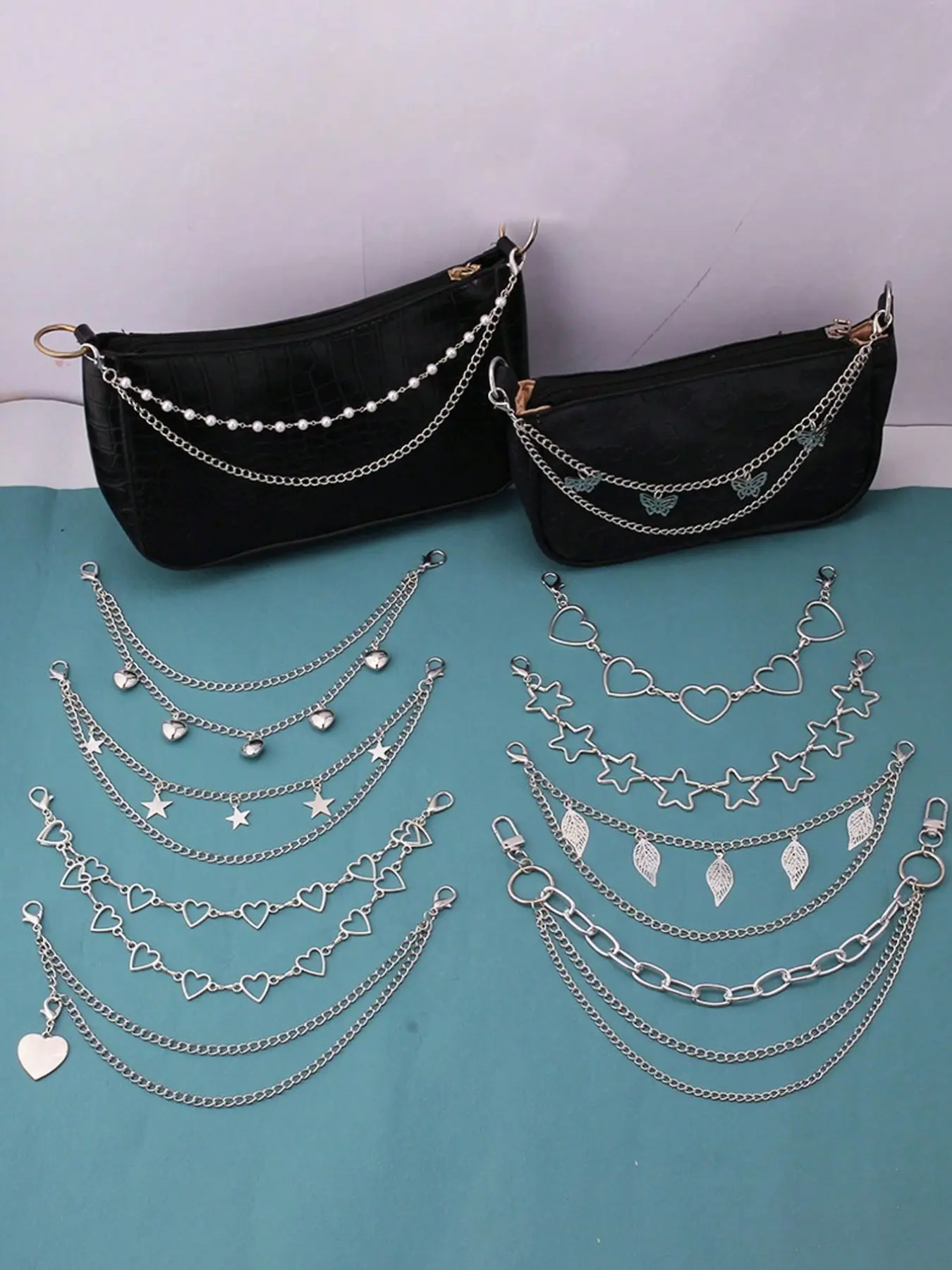 5. Double Layer Bag Chain, Handbag Decorative Chain, Butterfly Heart Star Keychain Pendant, Shoulder Bag Strap, Women's Gift, Metal Chain