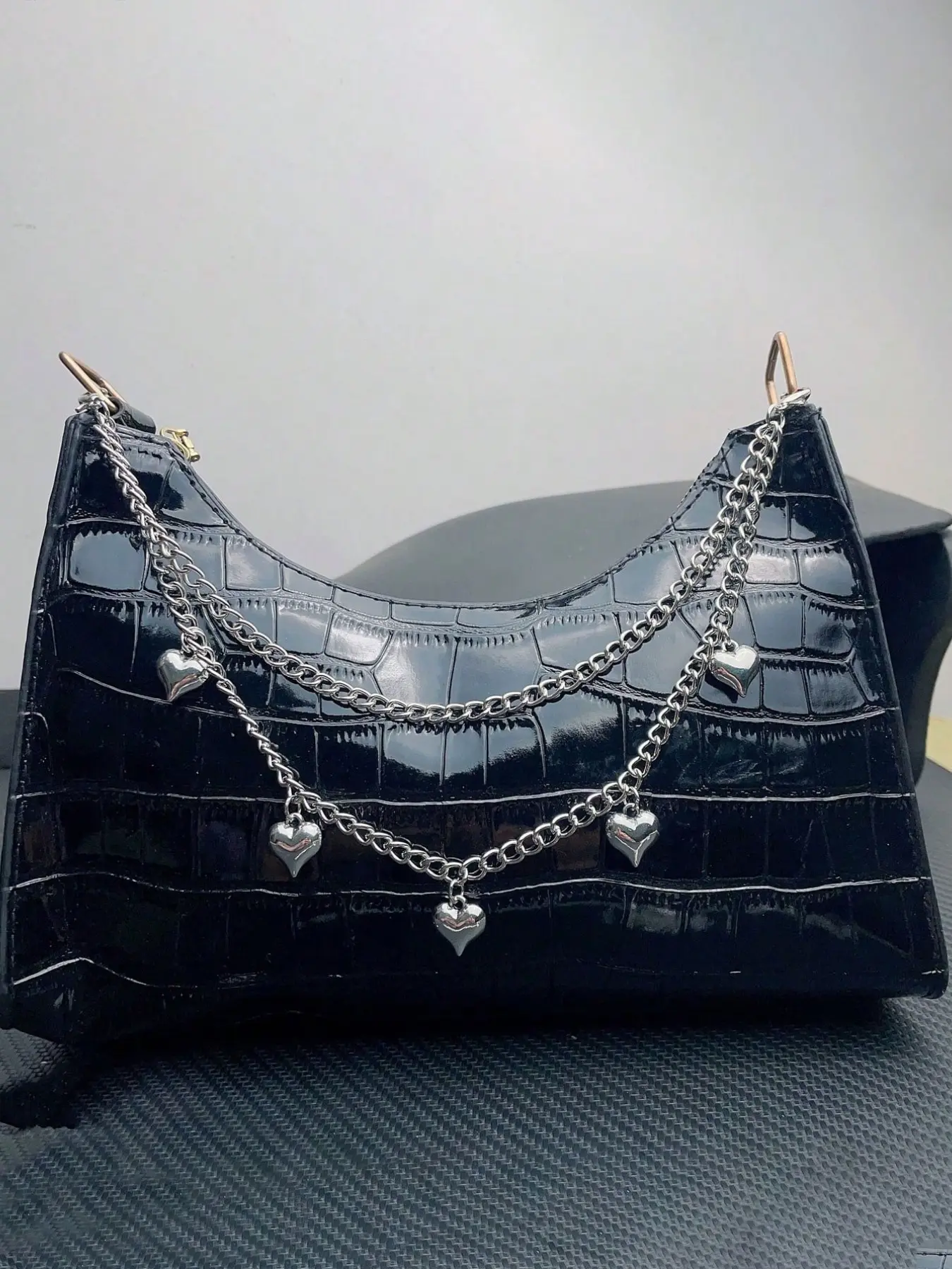Silver, Double-Layer Peach-Heart Bag Chain