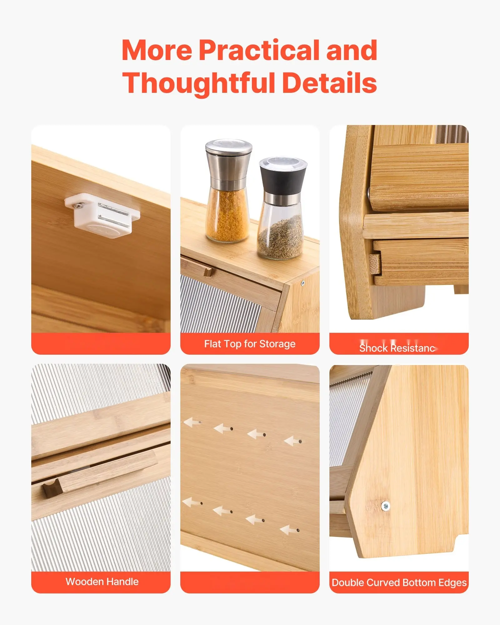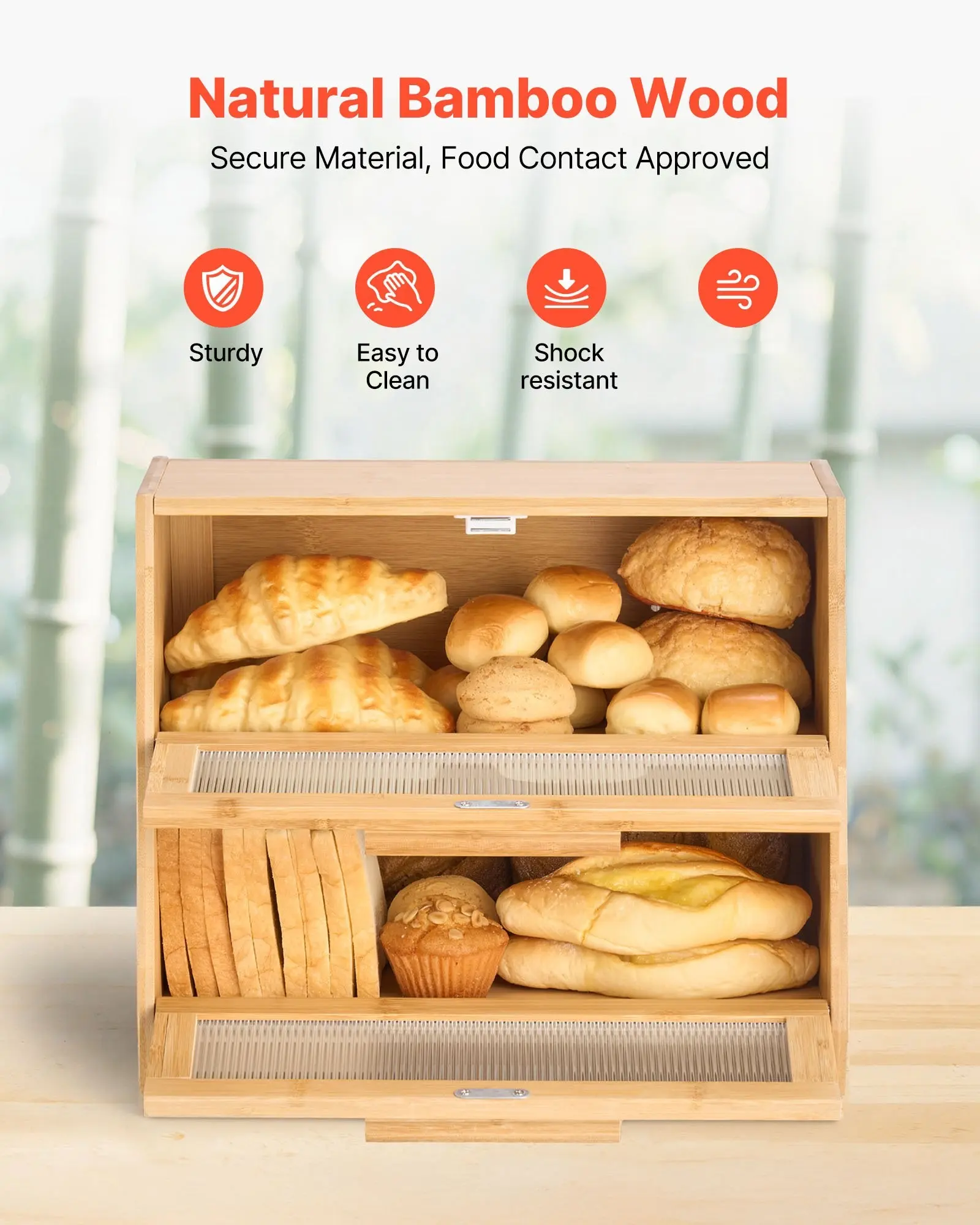 ·Durable and Ventilated Material: Crafted from natural bamboo, this wooden bread storage bin is both reliable and durable. The back features ventilation holes that promote airflow, extending the freshness of your bread and keeping food fresh