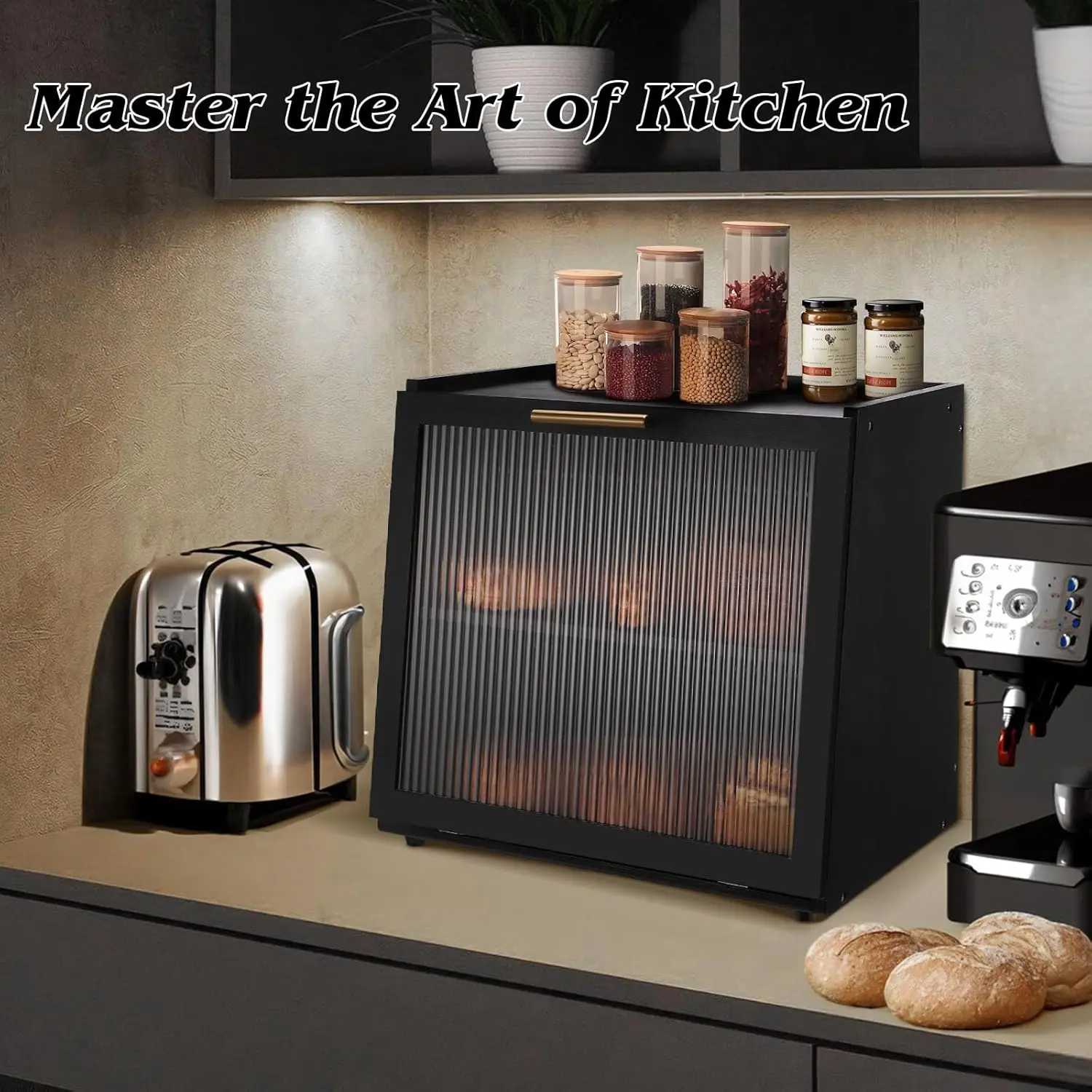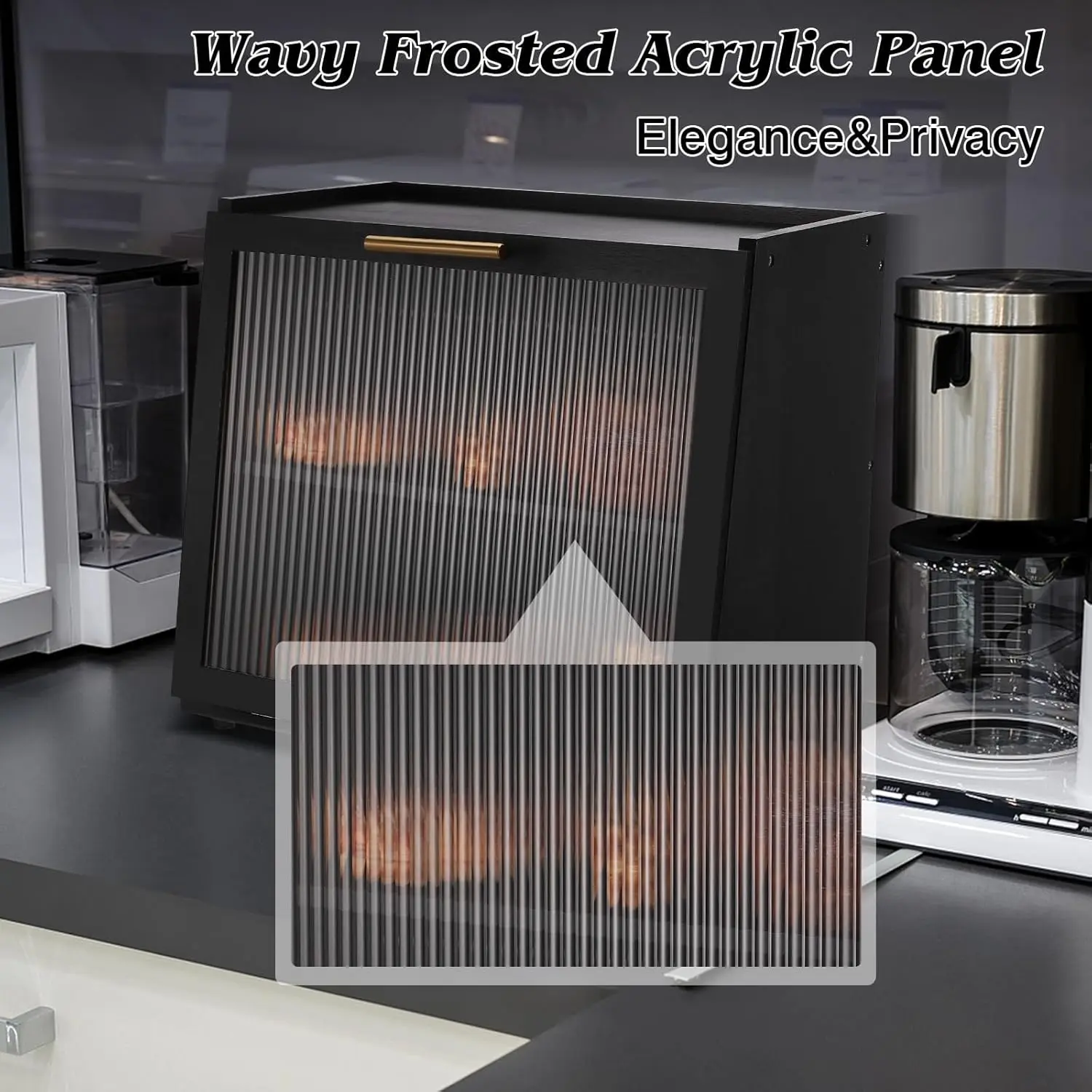 [Semi-Transparent Acrylic Panel]The acrylic panel not only makes the bread box look elegant and beautiful, it is also multi-functional.You can view what you have in the box as well as maintaining privacy.