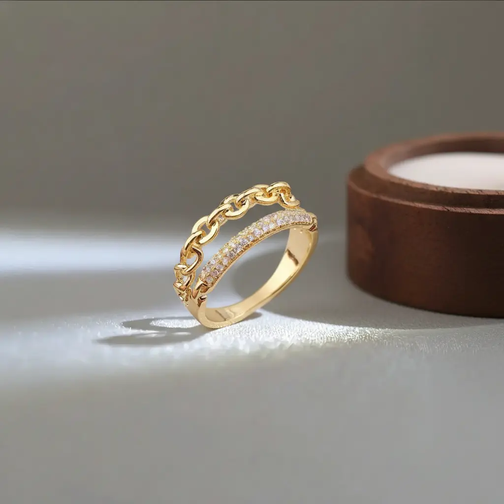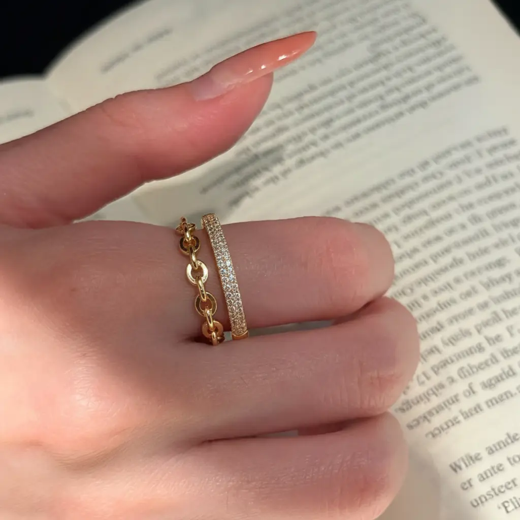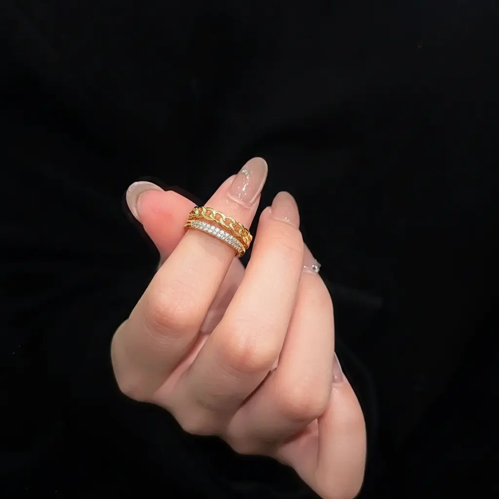 🌟 Double Layer Chain Moissanite Titanium Steel Ring 🌟
