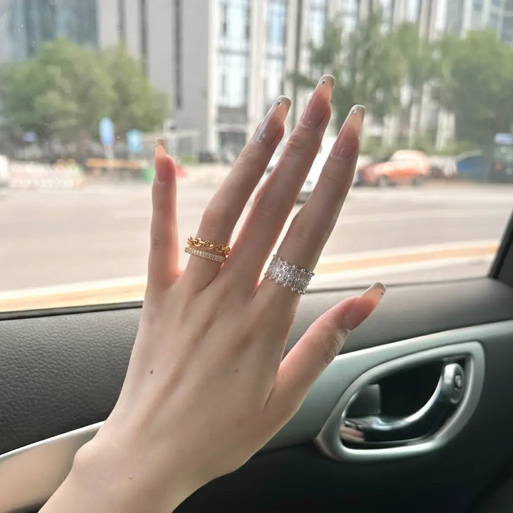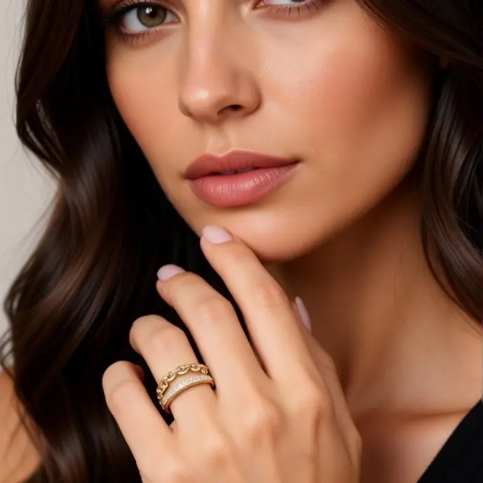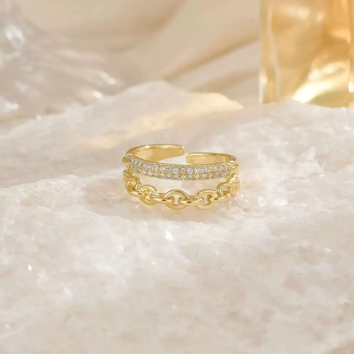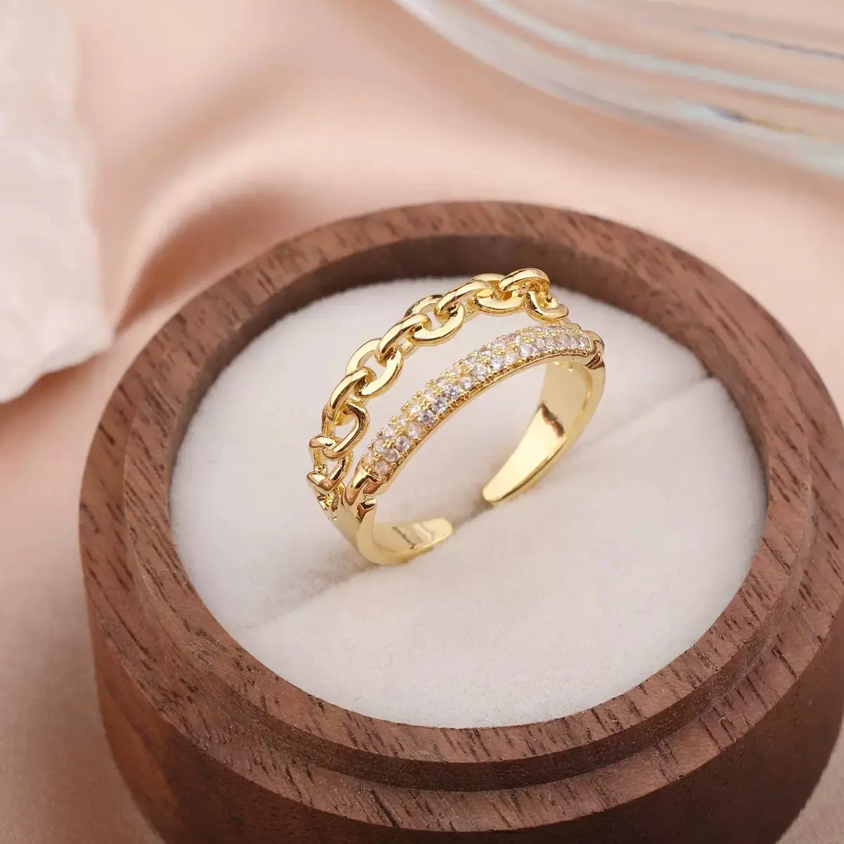 🌟 Double Layer Chain Moissanite Titanium Steel Ring 🌟