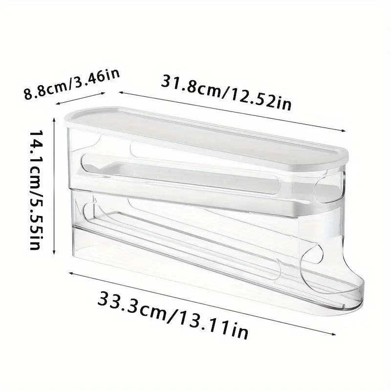 Double layer rolling egg storage box | Refrigerator side door space saving organizer | Durable polypropylene | Transparent, stackable design with easy to open lid | Perfect for home use, refrigerator egg rack
