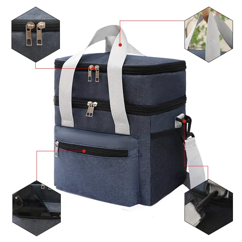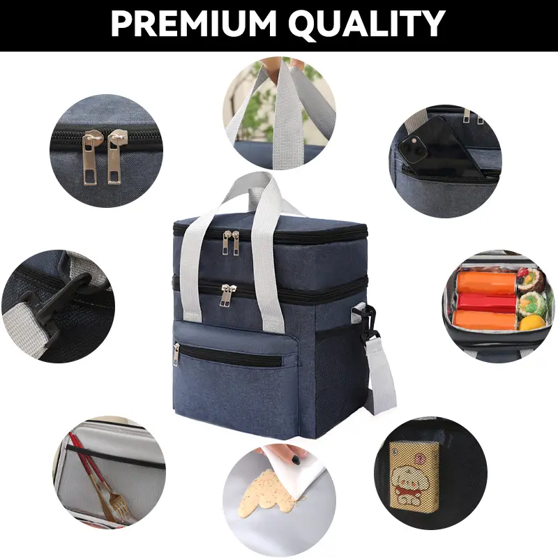 Elevate your lunchtime with this versatile double-layer lunch bag. Perfect for both men and women, it offers a large capacity for work, school, or travel. The bag is water-resistant, ensuring your food stays fresh. Ideal for picnics, it's a reusable tote that keeps your meals organized.