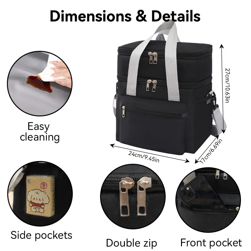 This lunch bag is your go-to for everyday use. Its double-layer structure provides extra protection for your meals. Whether you're at work, in school, or exploring the outdoors, this bag is your reliable companion. Enjoy a comfortable, organized lunch experience every time.
