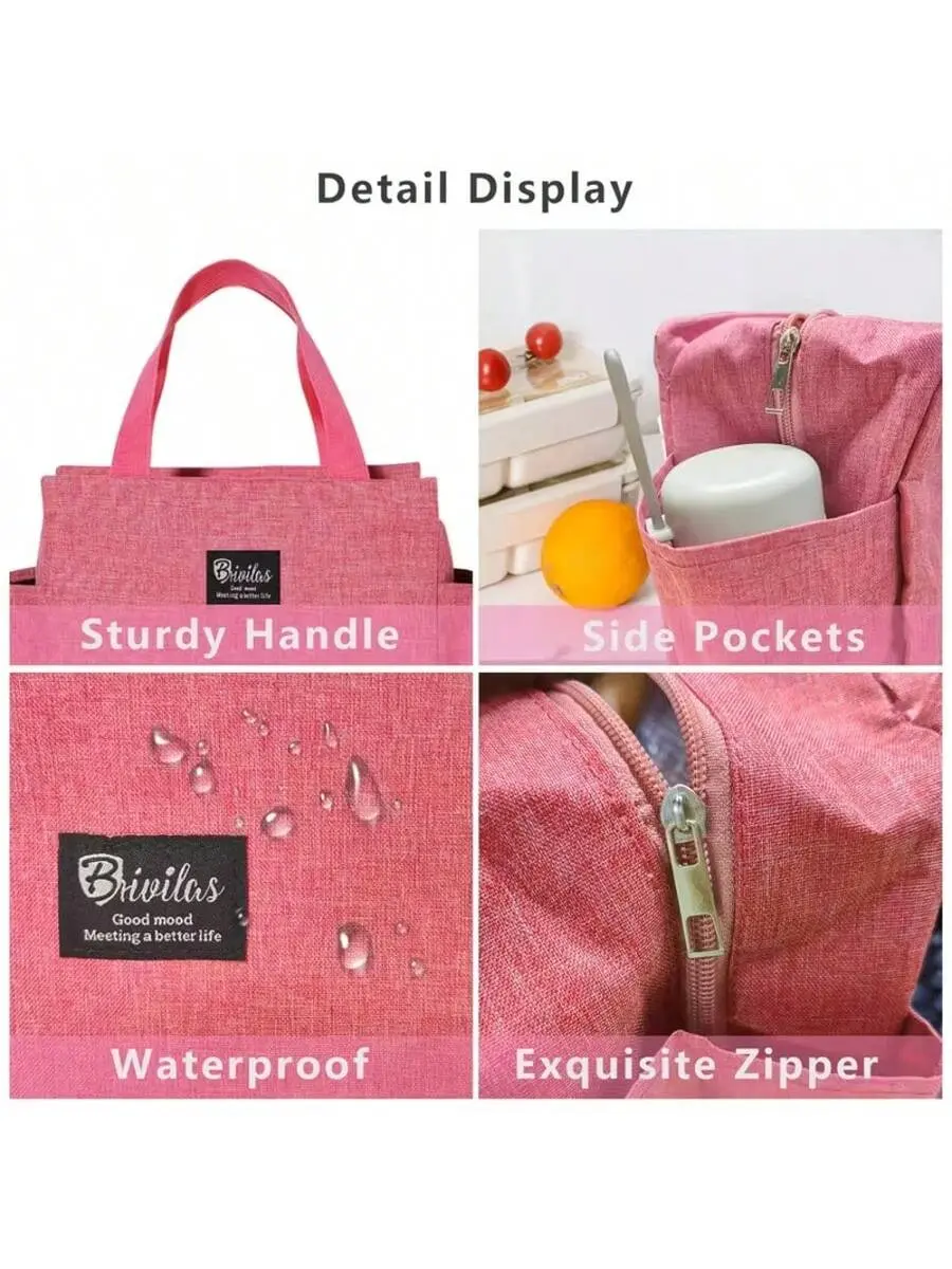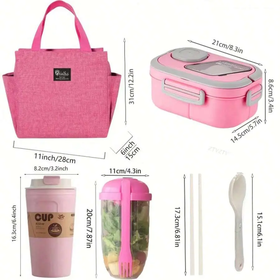 Color:Pink Set 1 (Lunchbox + Coffee Cup + Food Bag)