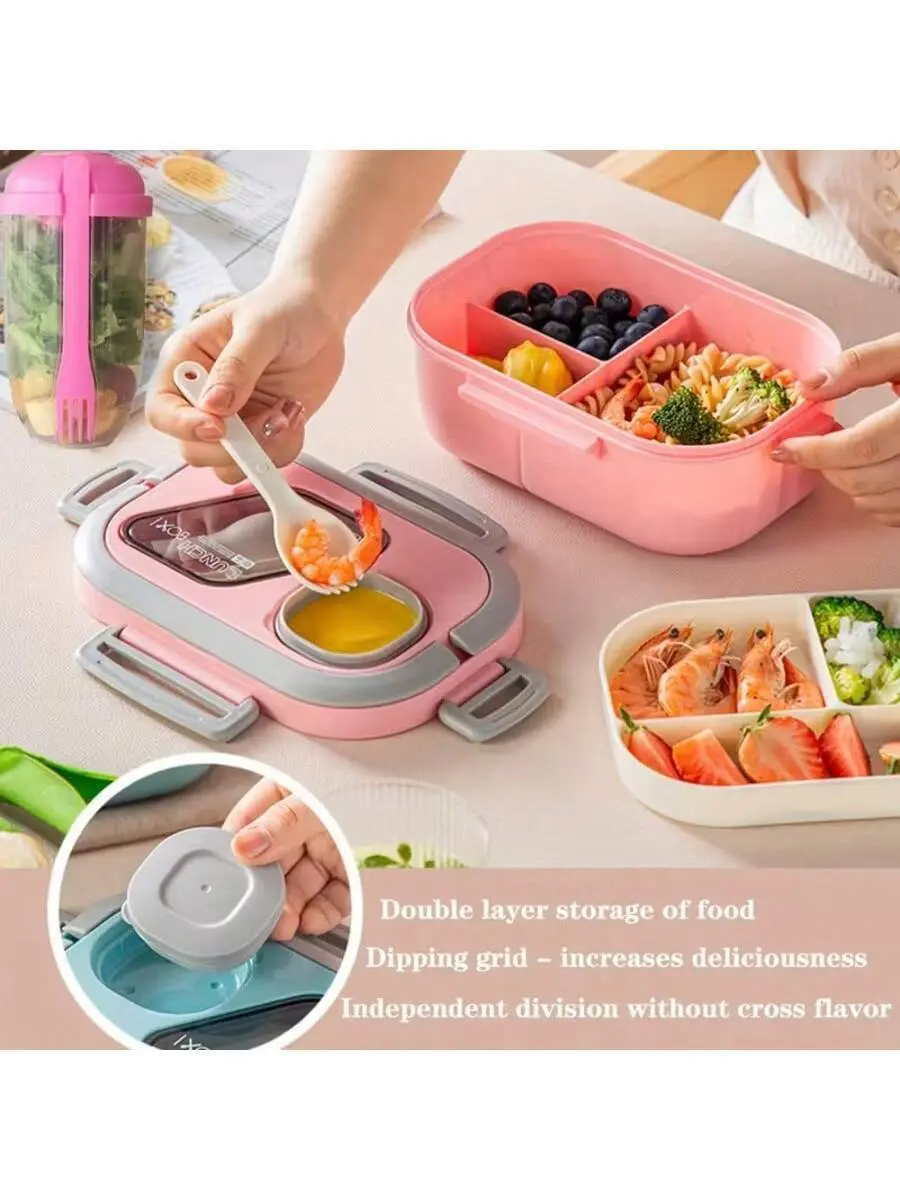 Double-Layer Multi-Compartment Lunchbox Set/Single Lunchbox. Includes Lunchbox, Cup, And Lunch Bag, Suitable For School, Office, And Outdoor Picnics. | Food Storage Containers | Kitchen Accessories | Lunchbox Set/Single Lunchbox