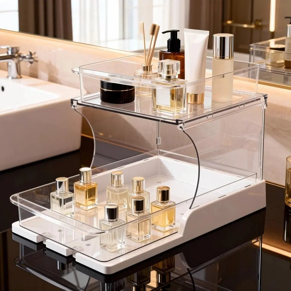 【Double Layer Design】: Features two layers for increased storage capacity, perfect for organizing cosmetics and essentials.