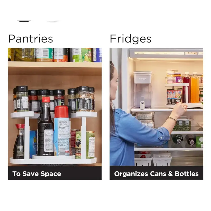 Dual-Spin Lazy Turntable – Built-in rotating disc, just a gentle turn and all spices are within reach.Keeps everything clearly visible and provides storage space for taller items.Reuses unused space in the cabinet, making all items easily accessible!