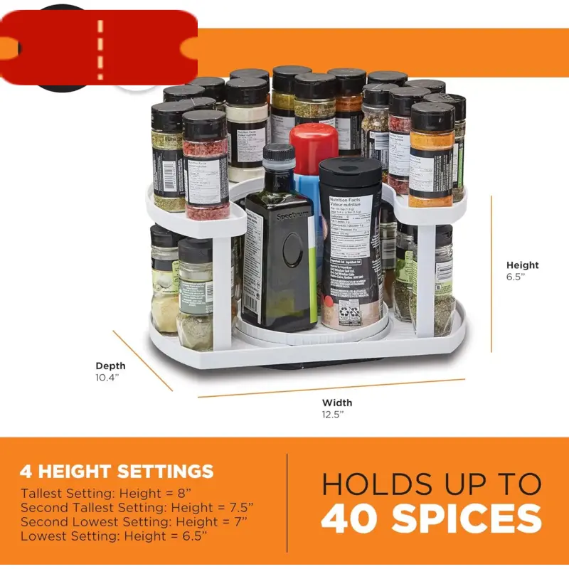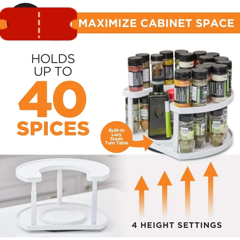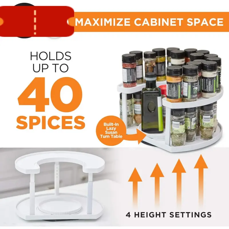 Double-layer rotating kitchen spice rack, saves space and keeps items neat organized, equipped with a tray, all are within reach automatic battery small item salt pepper spinner red cover pantry travel outdoor picnic gadget accessory Microwave Steamer LED