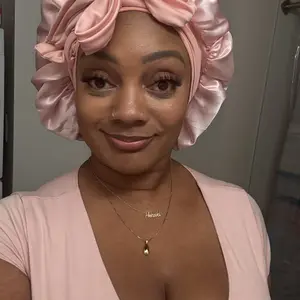 I absolutely love my bonnet and it makes such a huge difference waking up in the morning. My hairs not frizzy and saves me so much time doing my hair. It also stayed on all night and I didn’t have any issues sleeping with on my head all night. Highly recommend.