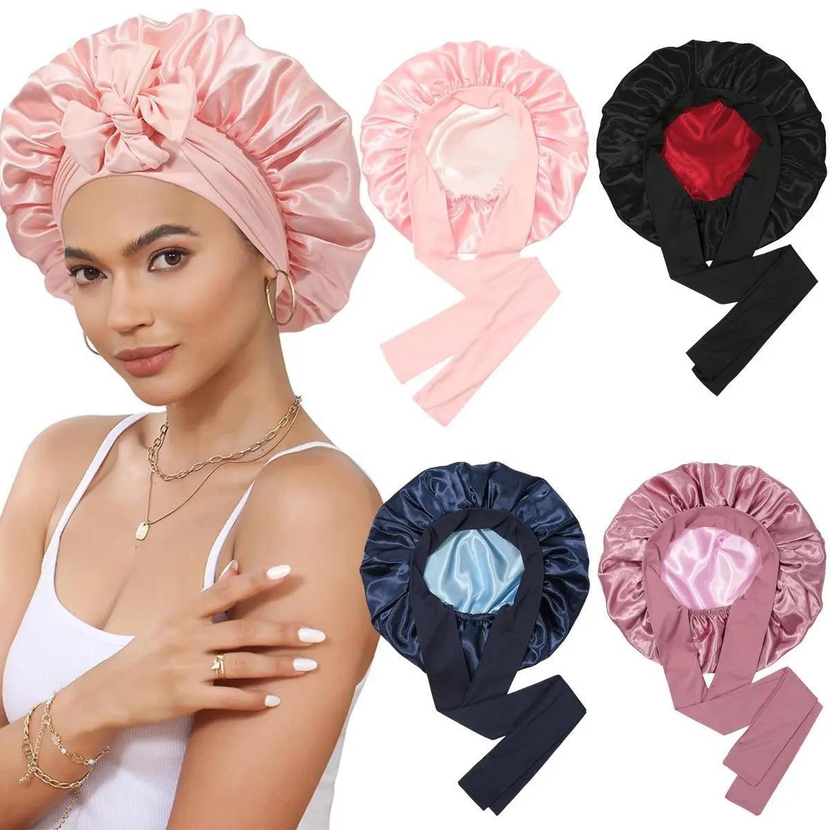 【Satin Bonnet for Sleeping Versatile】:Satin hair bonnet is not only suitable for sleeping, you can also use it to wash your face, bathe, cook, do SPA, tie your hair or clean your face while doing makeup, even do housework, do yoga and so on