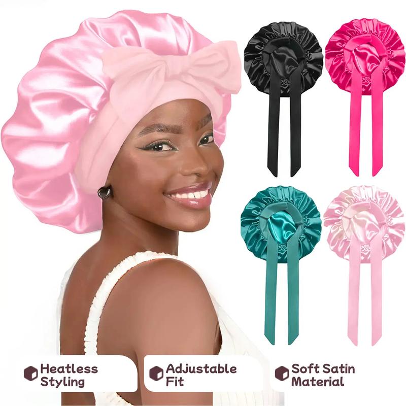 1/4 Pcs Double Layer Satin Bonnet,Soft and Breathable Hair Care Bonnet,Adjustable Night Sleeping Cap,Heatless Styling Tool for Women