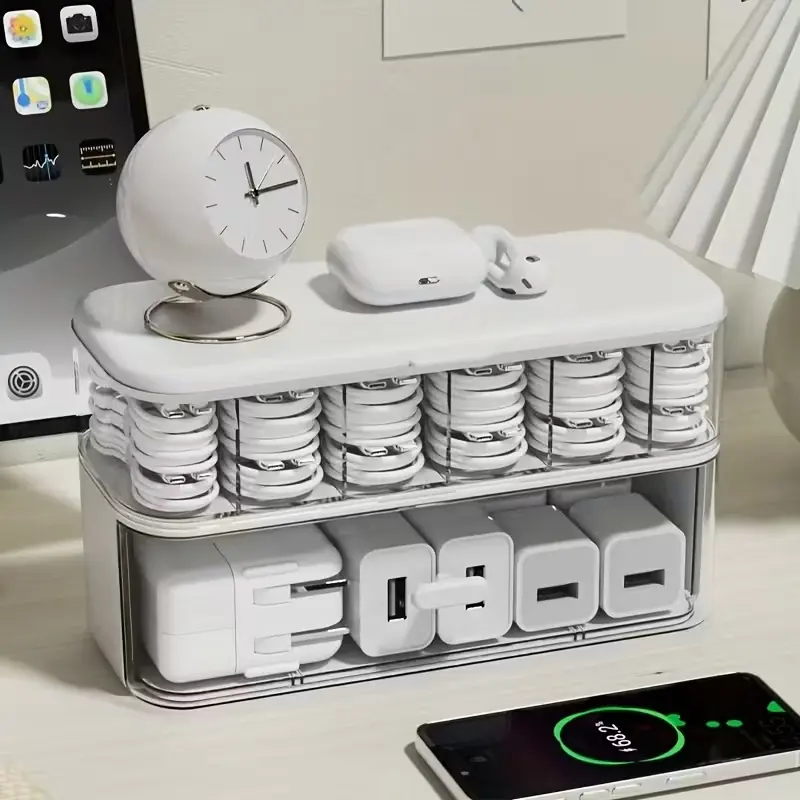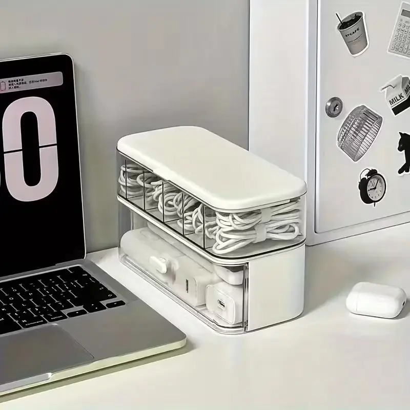 Double-Layer Transparent Desktop Cable Organizer Box, Compact Cord & Charger Storage, Adjustable Compartments, Home Office Use #closetstaples #storagecontainers #4in1armrestcharger #homeorganizationrack #electricstandingdesk✅ #dresserstorage #deskgadgets #ankersmartdisplaycharger #computeraccessories #stylishgadgets