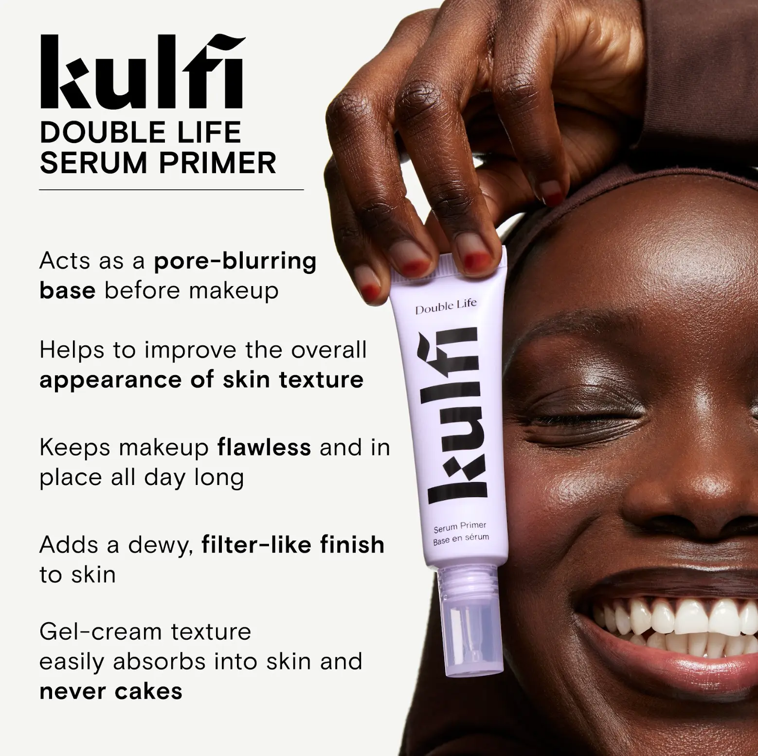 Double Life Serum Primer is a hydrating primer that improves the appearance of overall skin texture while keeping your makeup flawless all day long. This formula can be worn as the perfect pore-blurring base before makeup, alone for a filter-like finish, or even overnight as a part of your skincare routine -all while delivering skin-loving ingredients.