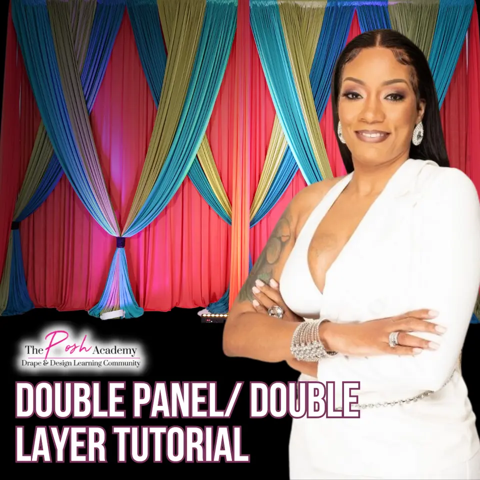 Elevate Your Event Designs with Our Double Panel Backdrop Virtual TutorialOur Double Panel Backdrop Virtual Tutorial is here to revolutionize your designs. In this tutorial, we'll unravel the magic of double panels, adding depth and dimension to your creations. Get ready to create visuals that leave a lasting impression!We believe in providing nothing but the best. Our Double Panel / Double Layer Backdrop Virtual Tutorial features top-tier fabrics and equipment, ensuring your backdrops radiate sophistication and luxury. Dive into the world of fabric selection, achieving impeccable drapery, and creating a visual masterpiece that captures the essence of any event.DOUBLE THE TROUBLE DOUBLE THE FUN!LEARN HOW TO INSTALL:Premium event draping Double panel backdropDraping techniquesEvent design craftsmanshipFabric selection for drapery