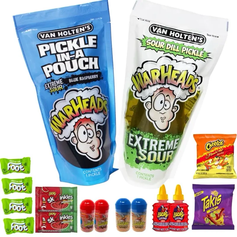 5. SUPER SOUR DOUBLE PICKLE KIT Blue Razz + CHAMOY Pickle - Extreme Sour Warheads