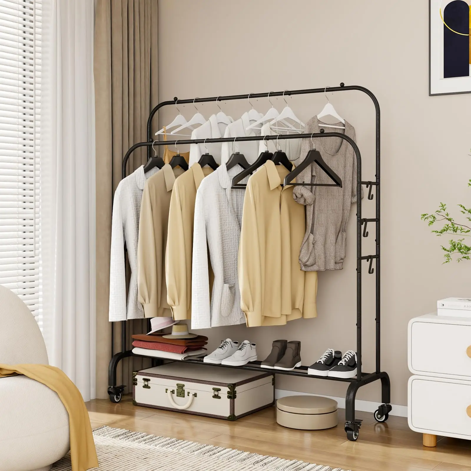 Double Rod Clothing Rack with Wheels 3 Tier Garment Racks for Hanging Clothes Portable Clothes Rack with 6 Hooks for Bedroom Laundry Room Heavy Duty Cart Black Metal Organizer Furniture Storage Hangable ShoeDouble Rod Clothing Rack with Wheels 3 Tier Garment Racks for Hanging Clothes Portable Clothes Rack with 6 Hooks for Bedroom Laundry Room Heavy Duty Cart Black Metal Organizer Furniture Storage Hangable ShoeDouble Rod Clothing Rack with Wheels 3 Tier Garment Racks for Hanging Clothes Portable Clothes Rack with 6 Hooks for Bedroom Laundry Room Heavy Duty Cart Black Metal Organizer Furniture Storage Hangable Shoe