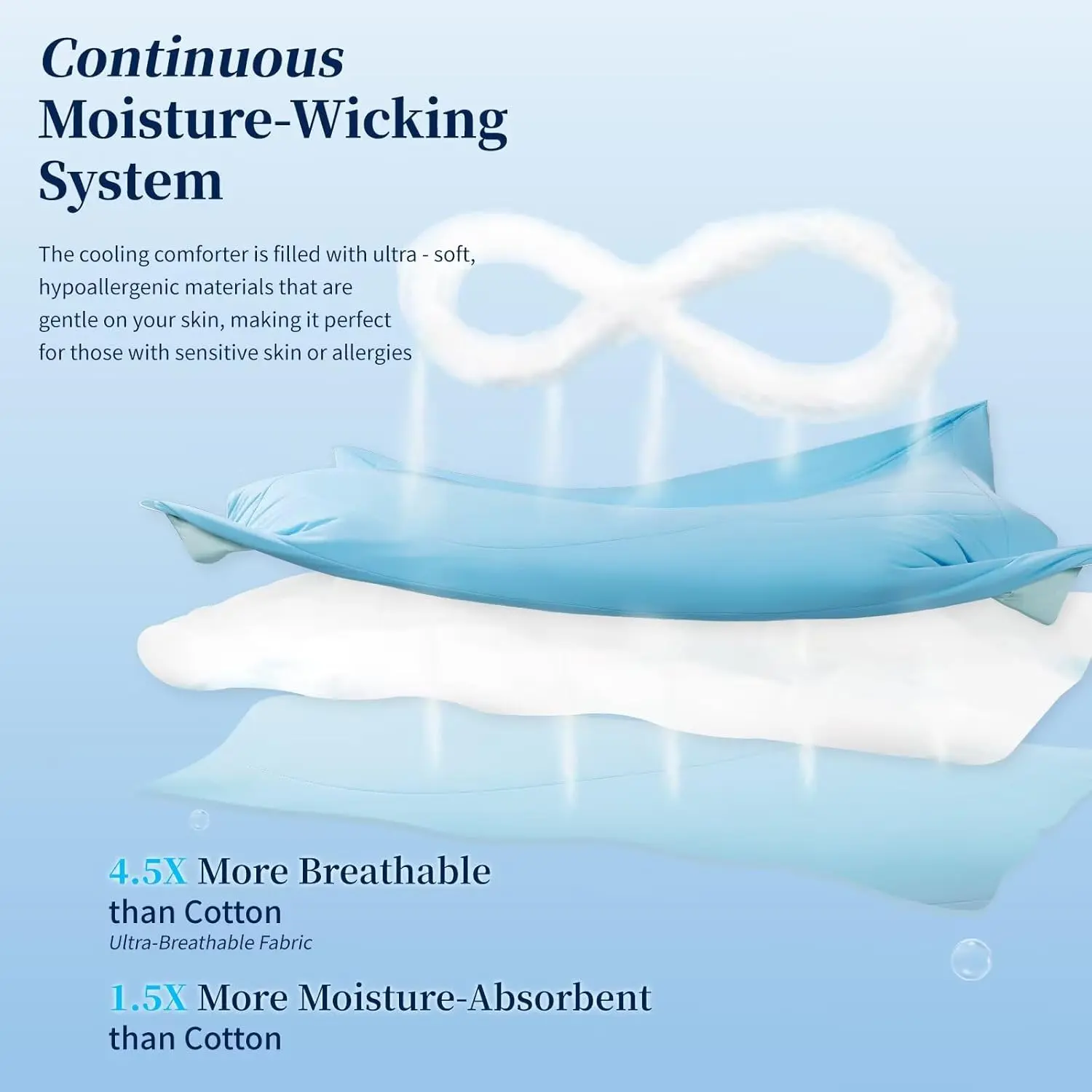 Air tunnels and moisture-wicking fibers pull heat and sweat away 30X faster than polyester. Lightweight and breathable, it offers a dry, cling-free "cool hug" all night long. Stay cool and dry effortlessly.