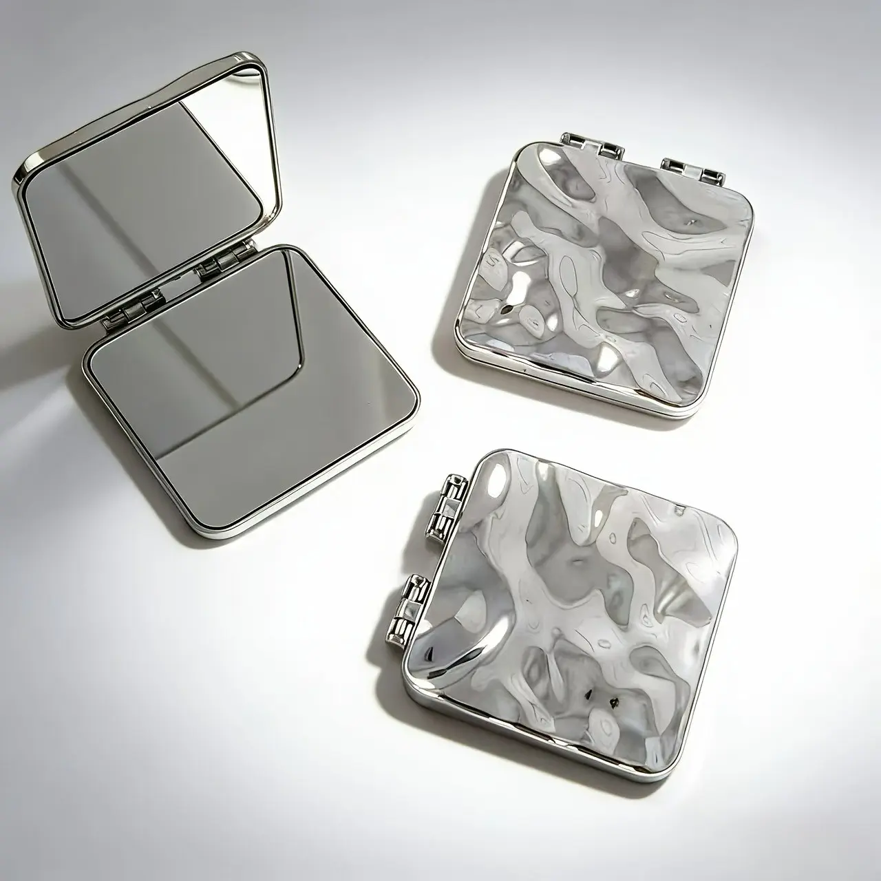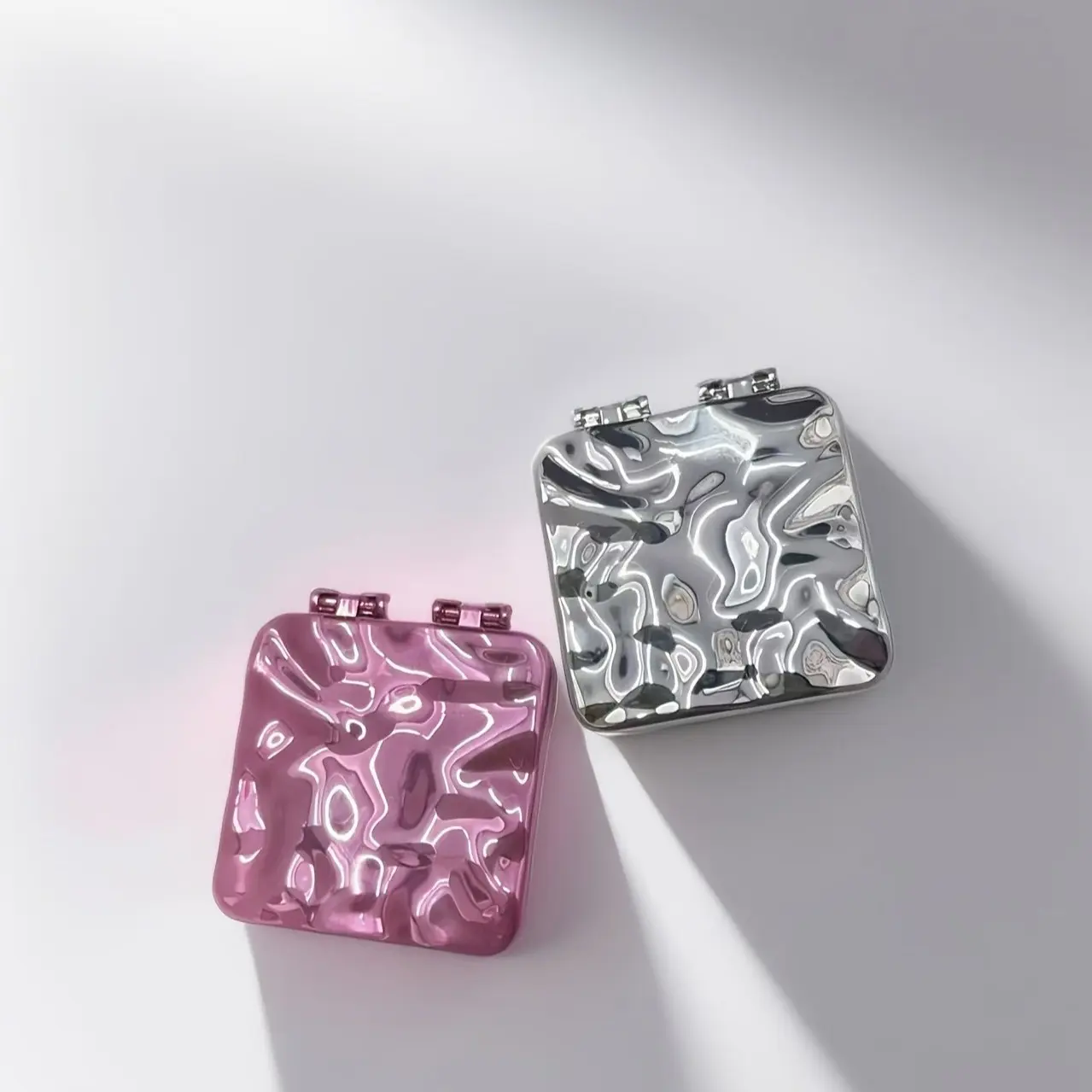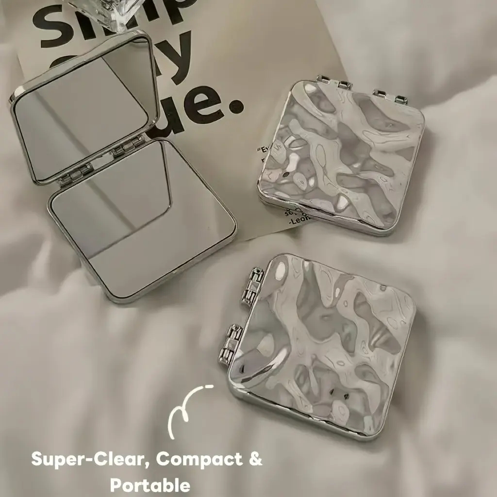 Double-Sided Electroplated Wave Texture Folding Mirror, High-Definition, No Distortion, Mini Size, Pocket or Bag Fit, Perfect Gift