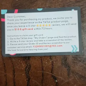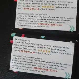 The seller put a card asking if you complete a review they will send you a $10.00 E gift card with 72 hours. They never send the $10 E gift card. However they will send you a $2 coupon that you can use 5 times to buy stuff from them. The product is fine but the seller is a complete fraud and shady!
