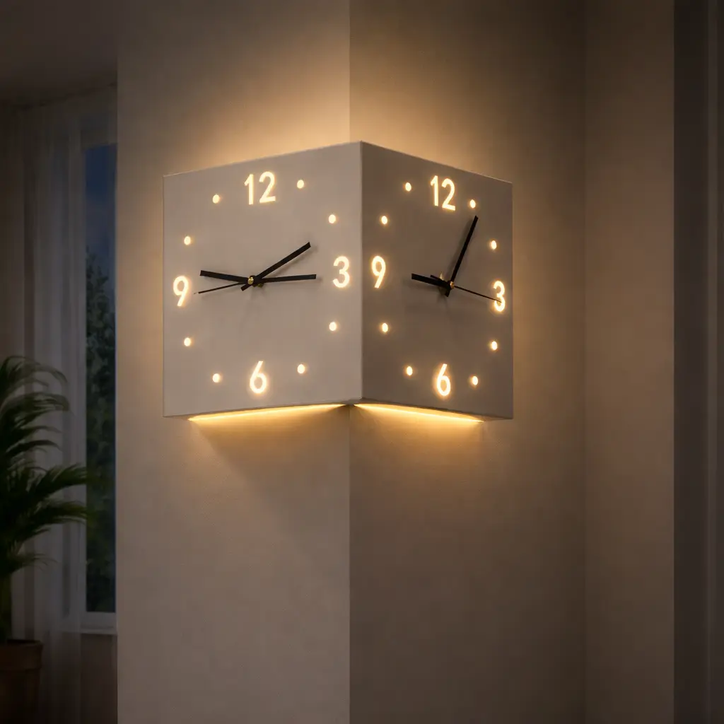 This Dual-time zone corner clock lets you tell time even in pitch darkness, but without wrecking your sleep or interrupting the ambiance of the room. Outfitted with sound-activate sensors, the clock auto lights up for just 52 seconds at dark environment. Perfect for a bachelor pad or home office that leans towards subtlety and sophistication when decorating, this corner clock elevates the minimalist flair of your home.