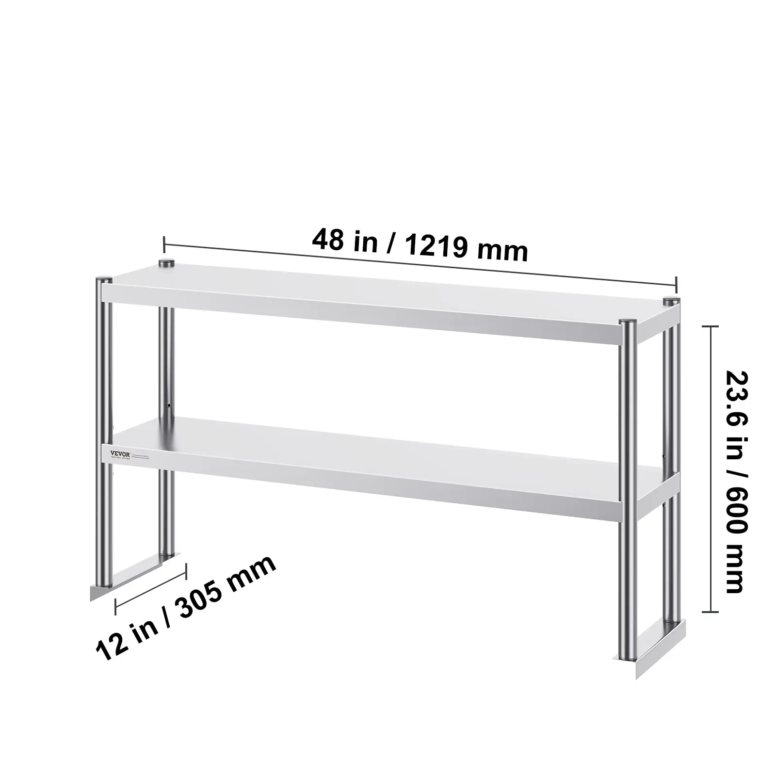 • High-Quality Stainless Steel: This work table, fixed base to top surface size: 12 x 48 x 24 inch, max overall size: 12 x 48 x 25 inch, is made from SUS201 stainless steel for the tabletop, shelves, and legs. It offers superior rust resistance, a sleek appearance, and a smooth surface that is easy to clean with a simple wipe. NSF certified, it meets strict public health standards, ensuring long-lasting protection for your health.