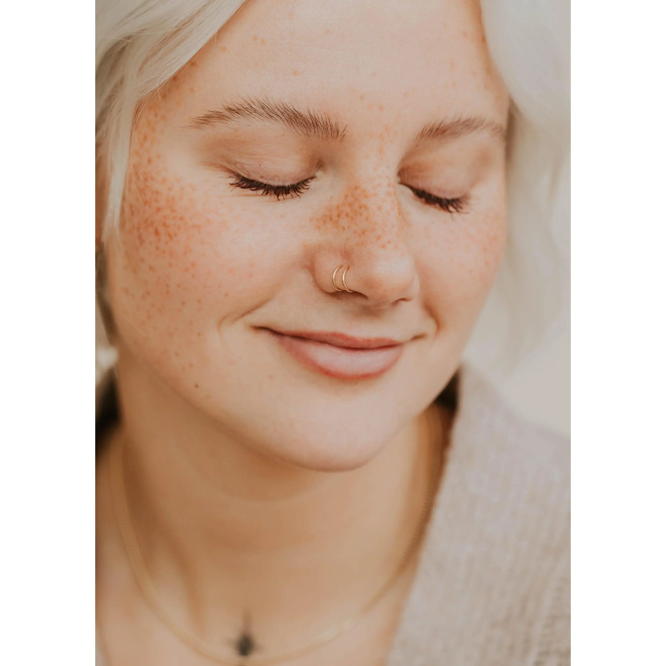 Love the look of multiple piercings but don’t have the holes? Our Double Up Nose Cuff is the perfect solution! Inspired by our fan-favorite Tiny Twists Earrings, this cuff gives you the illusion of multiple piercings with zero commitment.