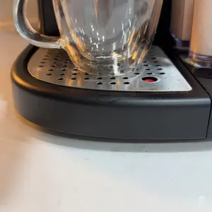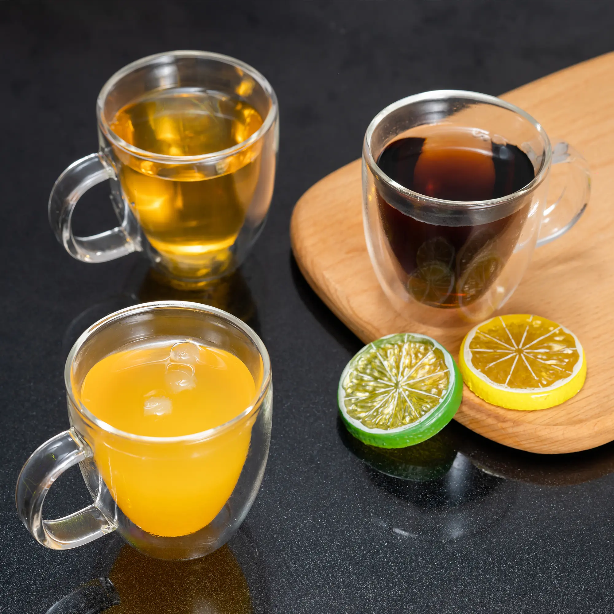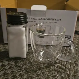 Lo bueno es que el doble vidrio ayuda a mantener la temperatura y además no se calienta tanto por fuera, así que puedes agarrarlo sin problema. También me gustó que el diseño hace que el café se vea flotando dentro del vaso, se ve súper bonito.