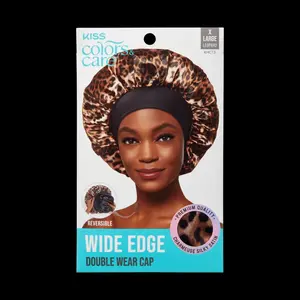 Pop on the luxury. This XL wide edge double-wear cap features premium leopard print silky charmeuse fabric to retain moisture and shield your hair from friction overnight. Built with extreme staying power, the XL wide edge band stretches for your ultimate comfort as it compresses to stay on until you remove it. Now in a reversible design to switch up your style.