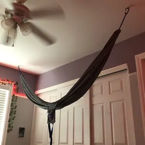 It’s sooooooo nice! I’m in love omg. It was SO easy to install and all we needed to do was go to hone depot and get the hooks that actually go into the ceiling. Then we drilled it in and it was done! It’s so smooth and it feels super nice. Get it! You won’t regret it! I bought this with my own money and I’m a child. Most of the purchases I have bought by myself I regret, but this no!! I love it so much! Go get it now! I haven’t tried to sleep in it yet but I really want to because it’s so comfy. The instructions are super clear and straightforward. It was so nice that it comes with the carabiners. I don’t use it for camping but I use it in my room so it stays nice and clean. The durability is so nice. Ok I could go on and on forever saying how nice this is, but my point is get it!!