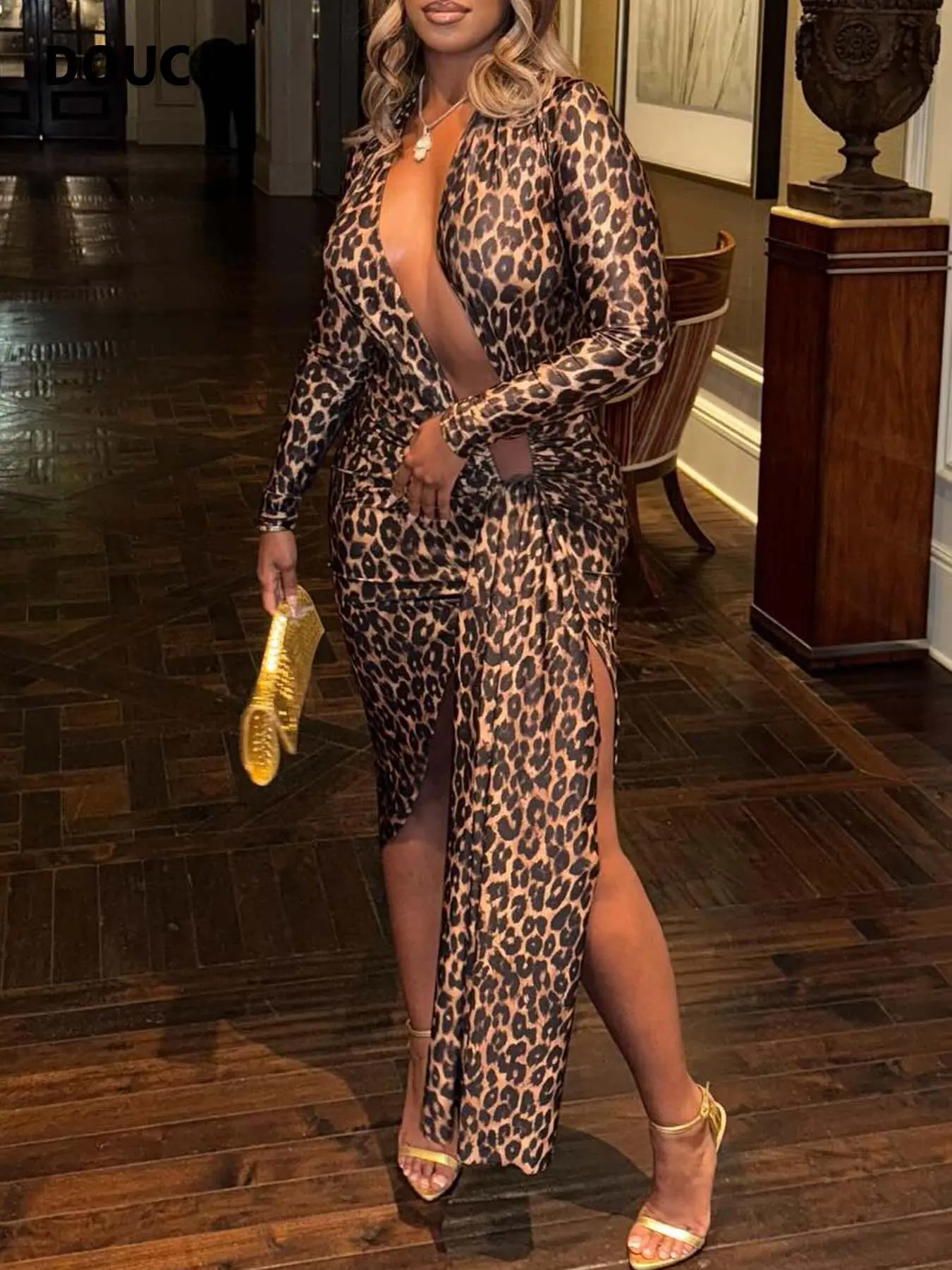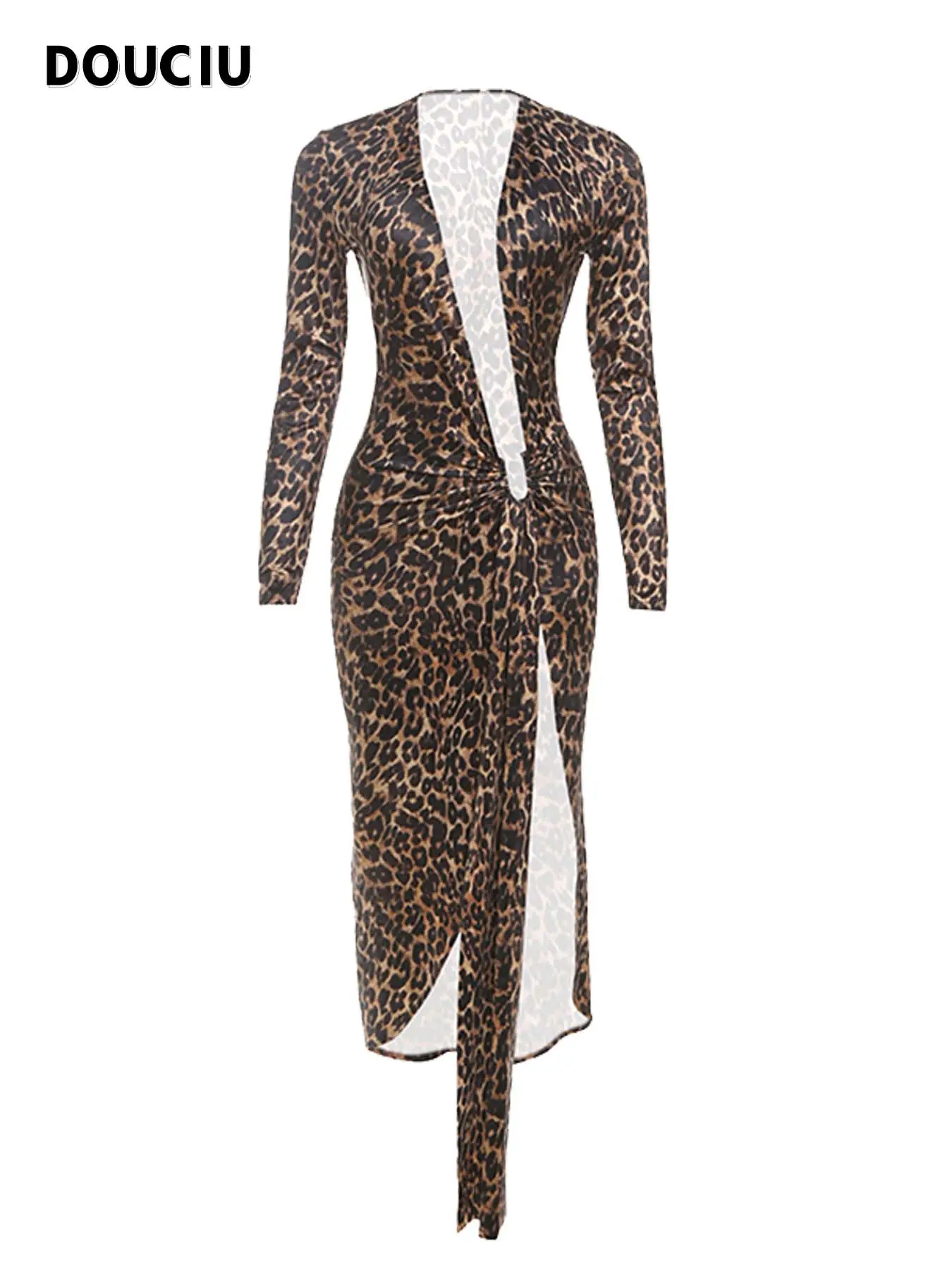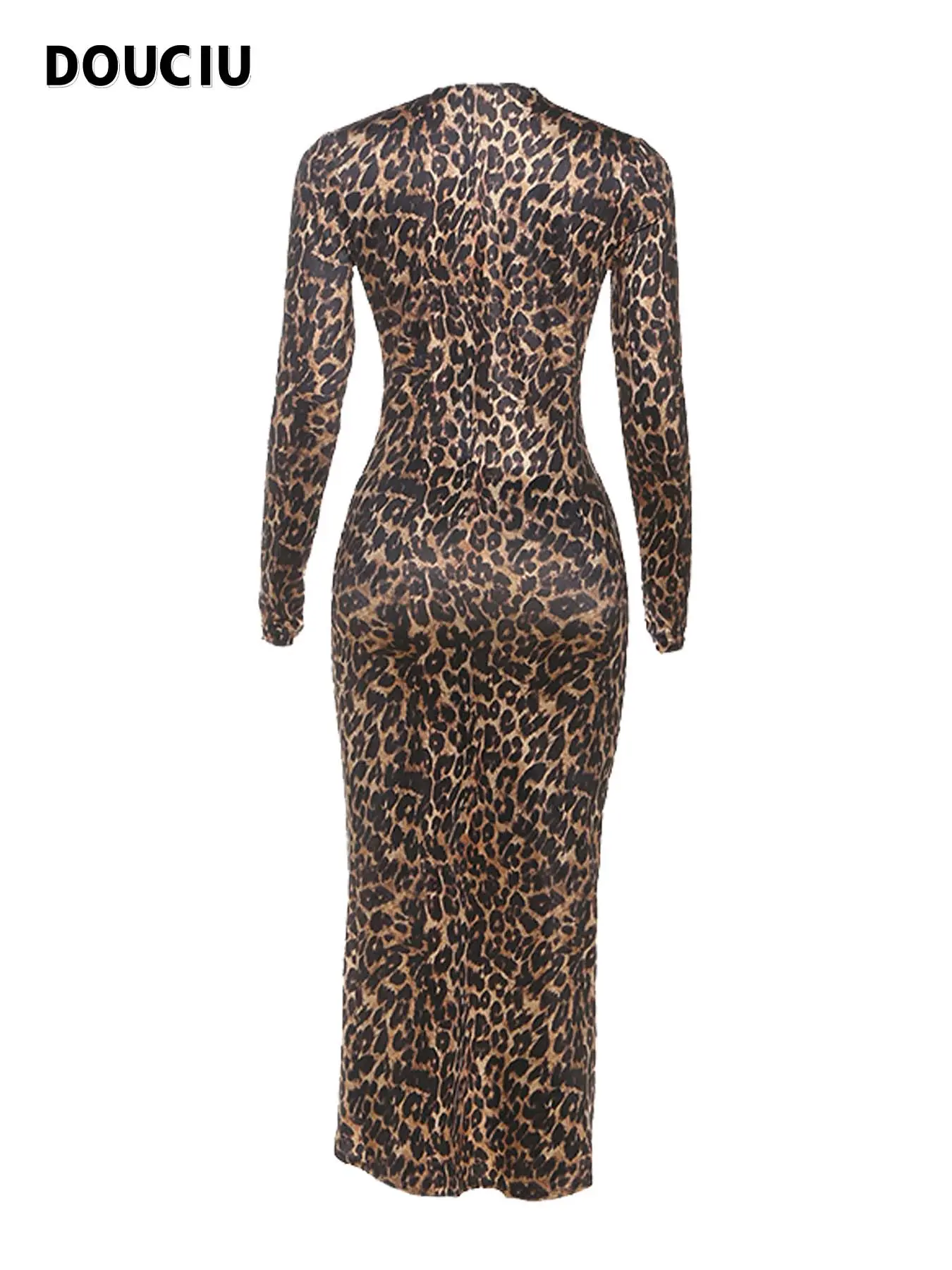 5. DOUCIU Bar Nightclub Party Dance Social Sexy Hot Beautiful Women'S Thin Bevel Design Printed Long Sleeve Elegant Formal Dress