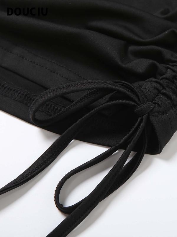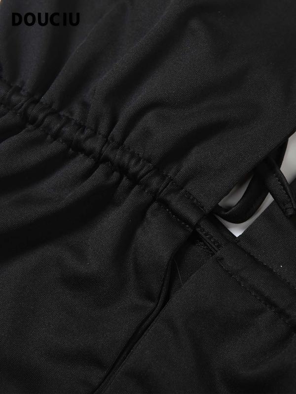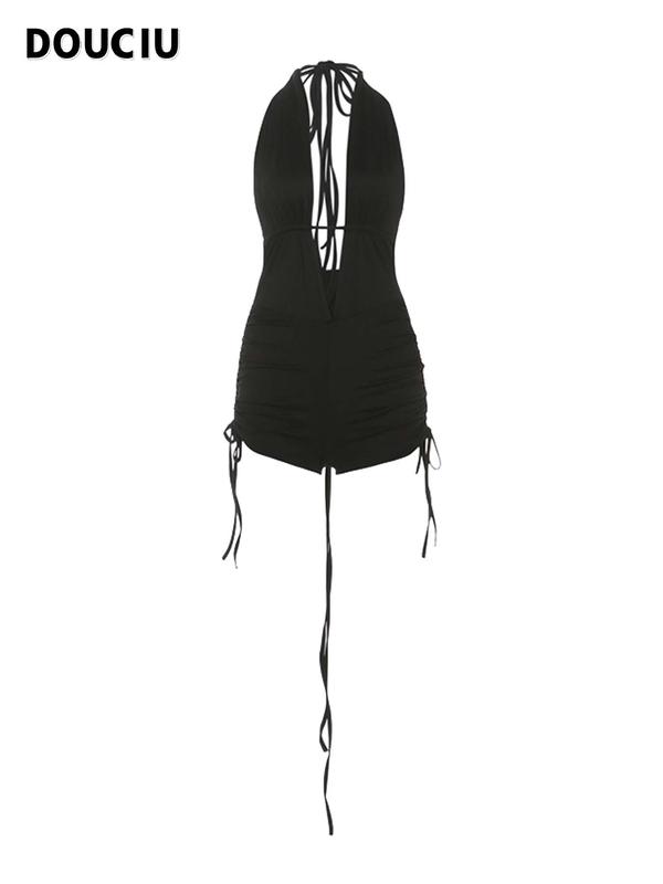 DOUCIU Basic Style Simple Casual Versatile Tight Fitting Mysterious Sexy Hot Cool Street Women'S Thin Solid Color Hollow Halter Jumpsuit