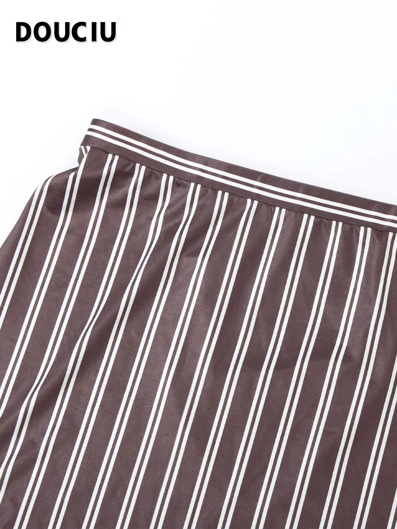 5. DOUCIU Tight Sexy Hot Basic Style Simple Casual Versatile Can Be Worn Inside Women'S Thin Striped Shirt Top Short Skirt Two-Piece Set Casual Fashion Set