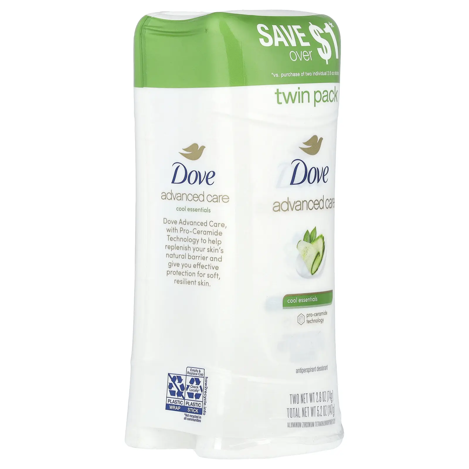 Dove Advanced Care, Anti-Perspirant Deodorant, Cool Essentials, 2 Pack, 2.6 oz (74 g) Each