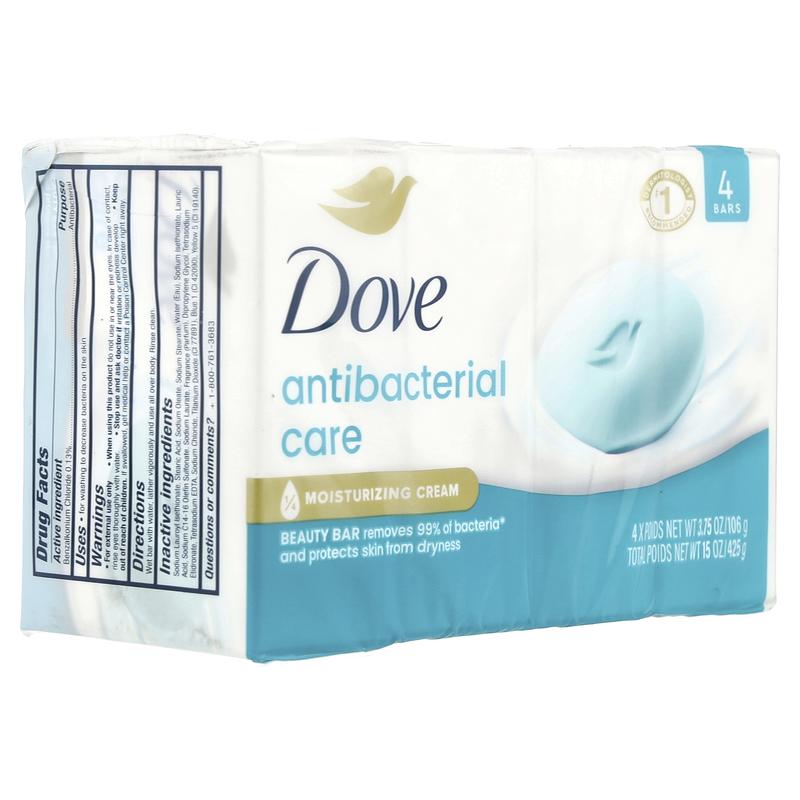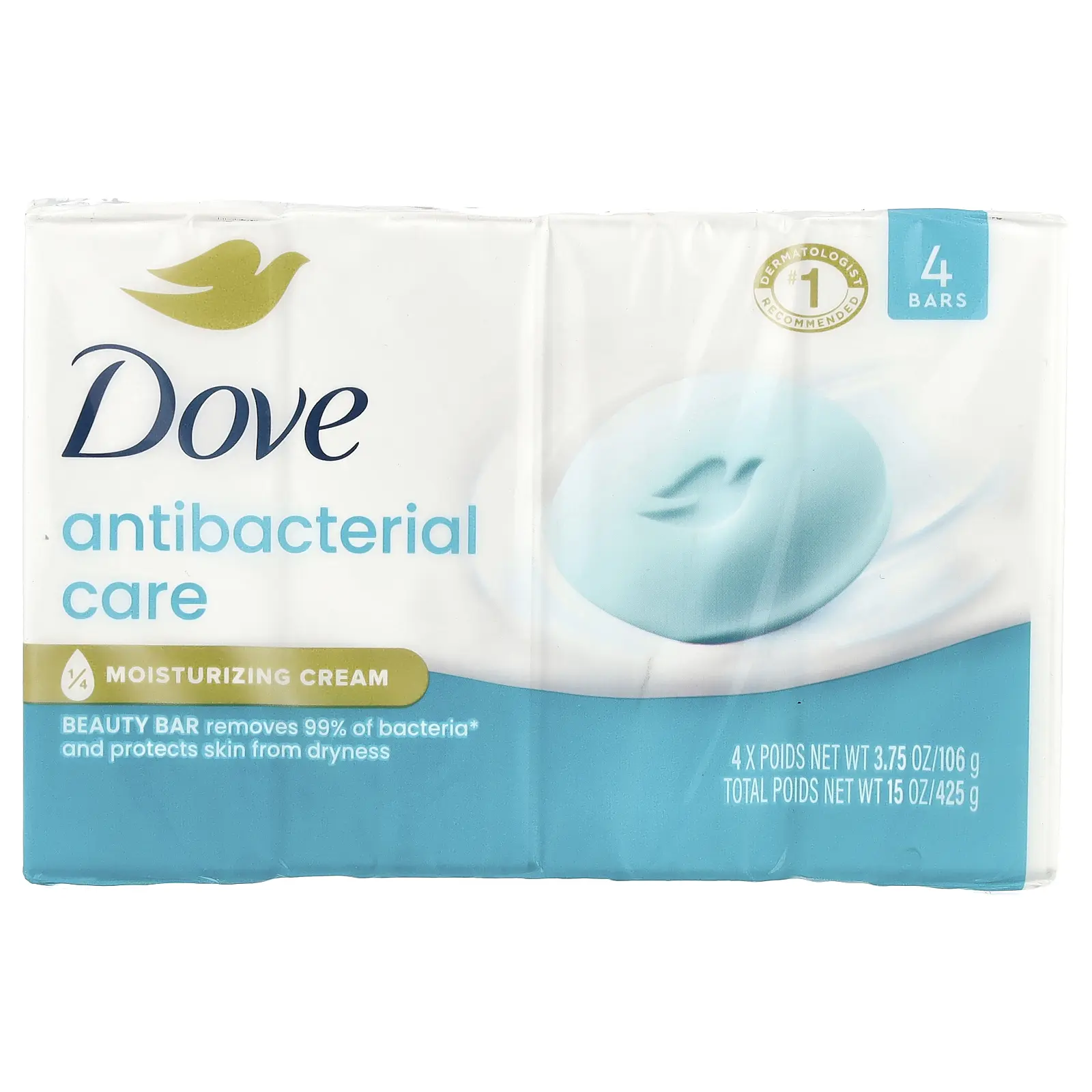 Dove Antibacterial Care Beauty Bar Soap, 4 Bars, 3.75 oz (106 g) Each