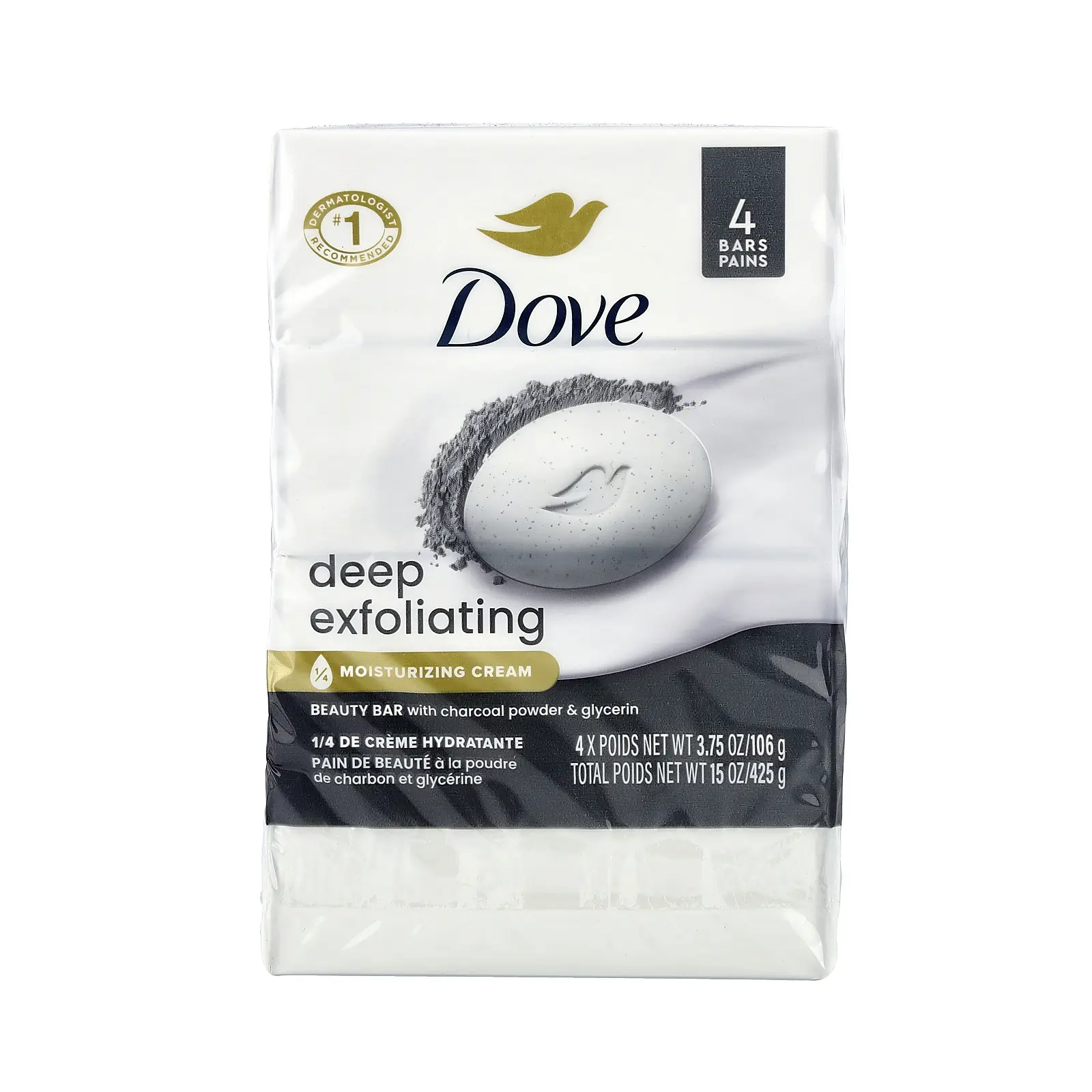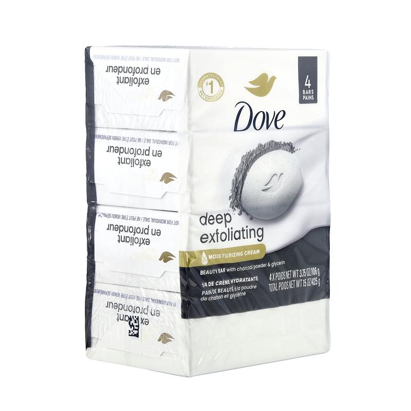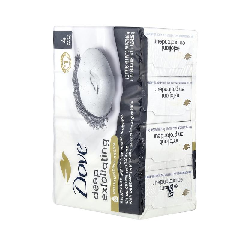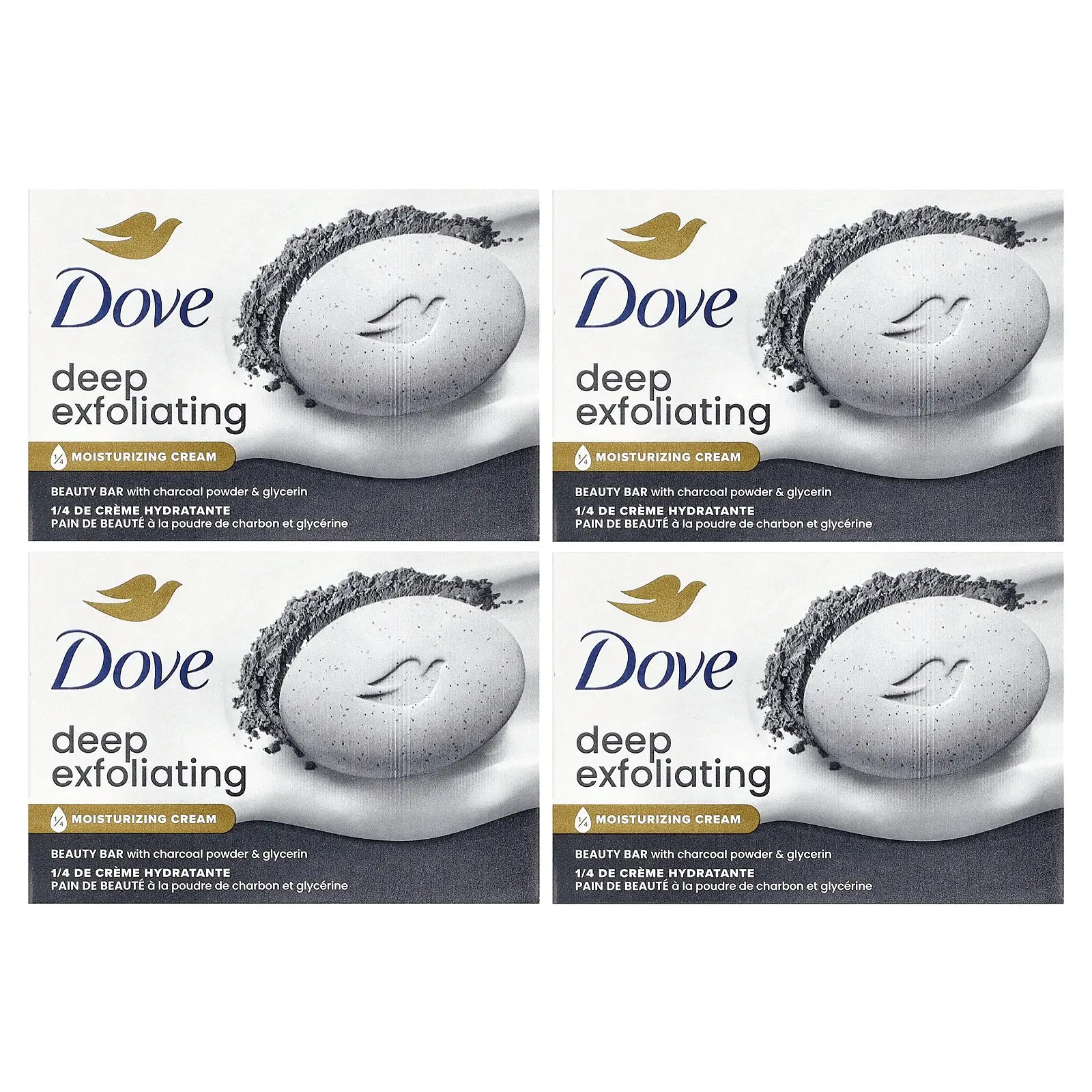 Dove Deep Exfoliating Beauty Bar with Charcoal Powder & Glycerin, 4 Bars, 3.75 oz (106 g) Each