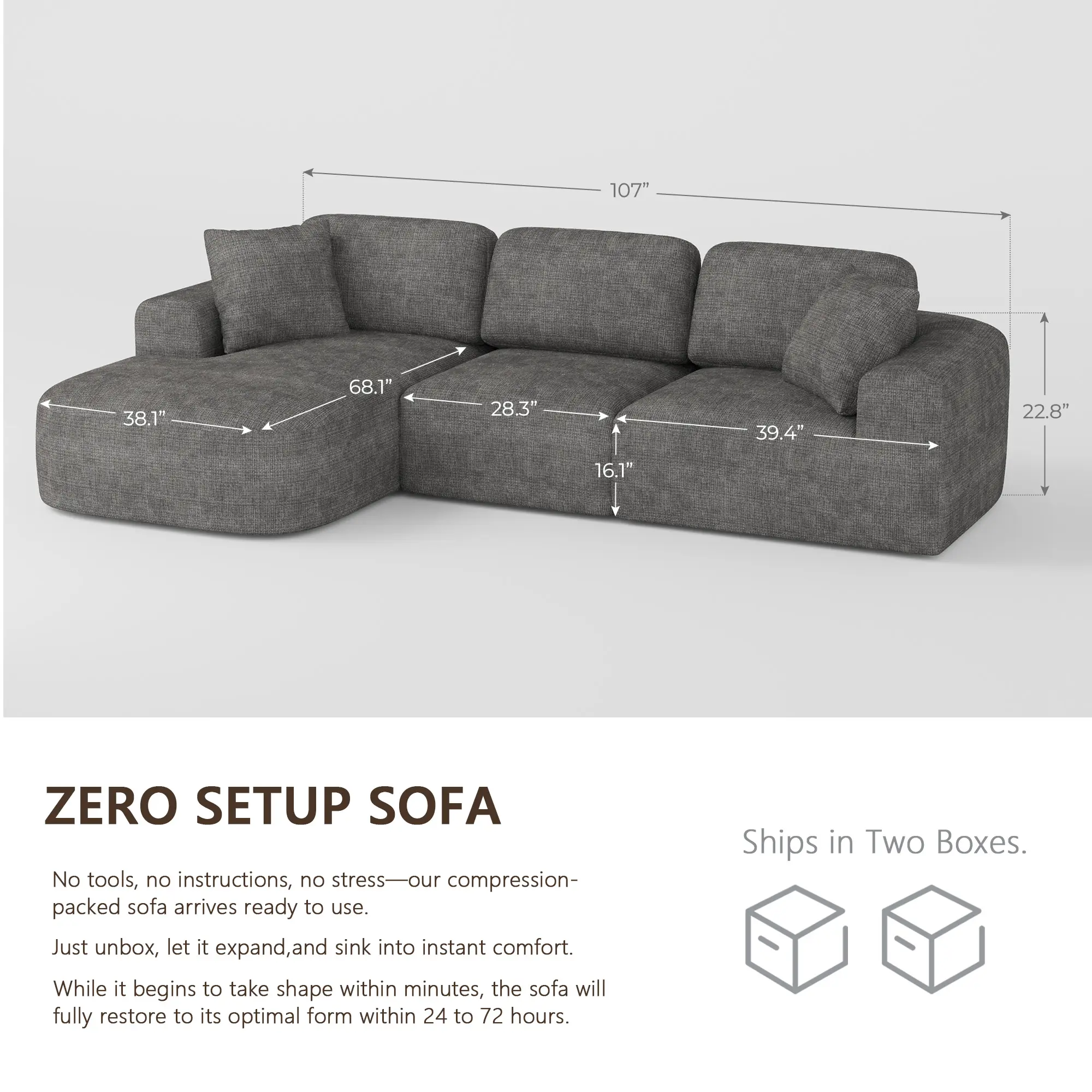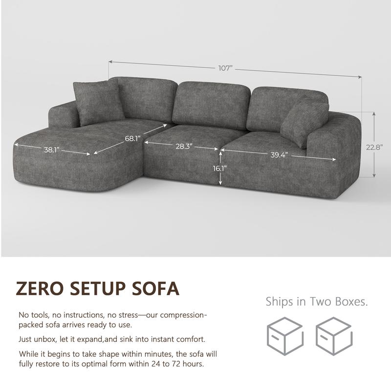 ·Convenient Sofa-in-Box Delivery – Ships in a compact compression-packed box. No tools or assembly required—simply unbox, and the sofa expands naturally into its full shape within hours. Perfect for hassle-free setup.