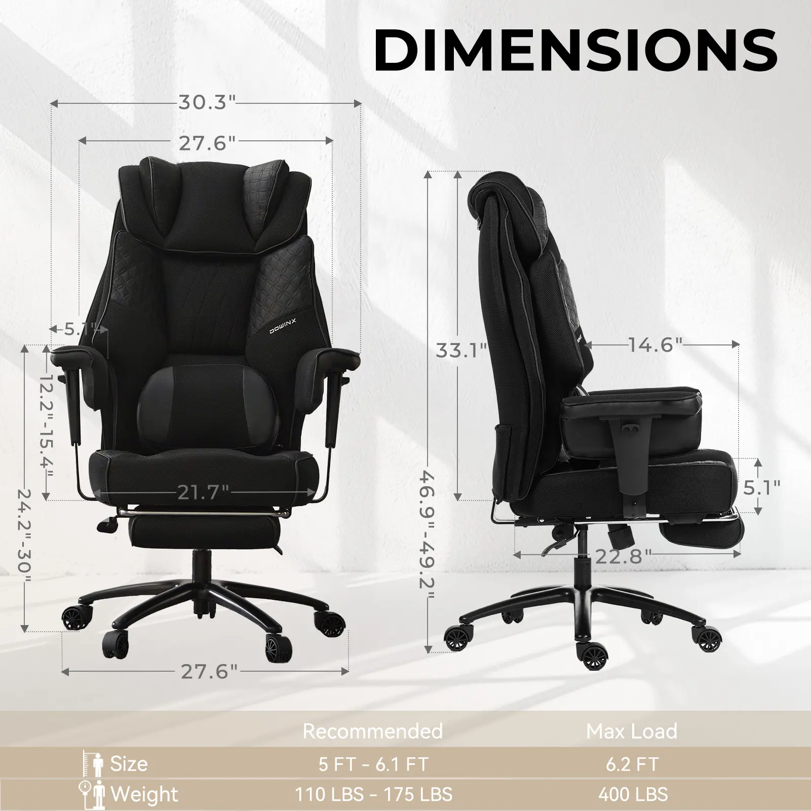 ·Double-Layered Thickened Backrest: This big and tall office chair features a dual-layer backrest design with a soft cushioning layer and a supportive layer, offering enhanced comfort and ergonomic support even during extended periods of sitting