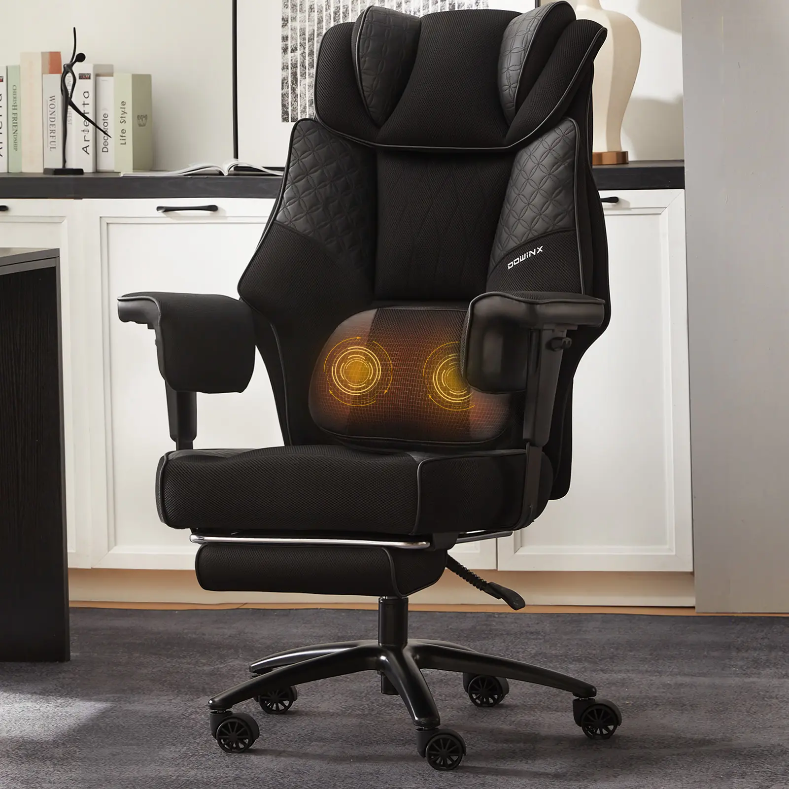 ·Luxuriously Spacious Seat:The seat cushion features a uniquely contoured shape that actively cradles your hips and thighs.Combined with its generously wide surface, it delivers unparalleled, all-day comfort tailored to your body's natural form