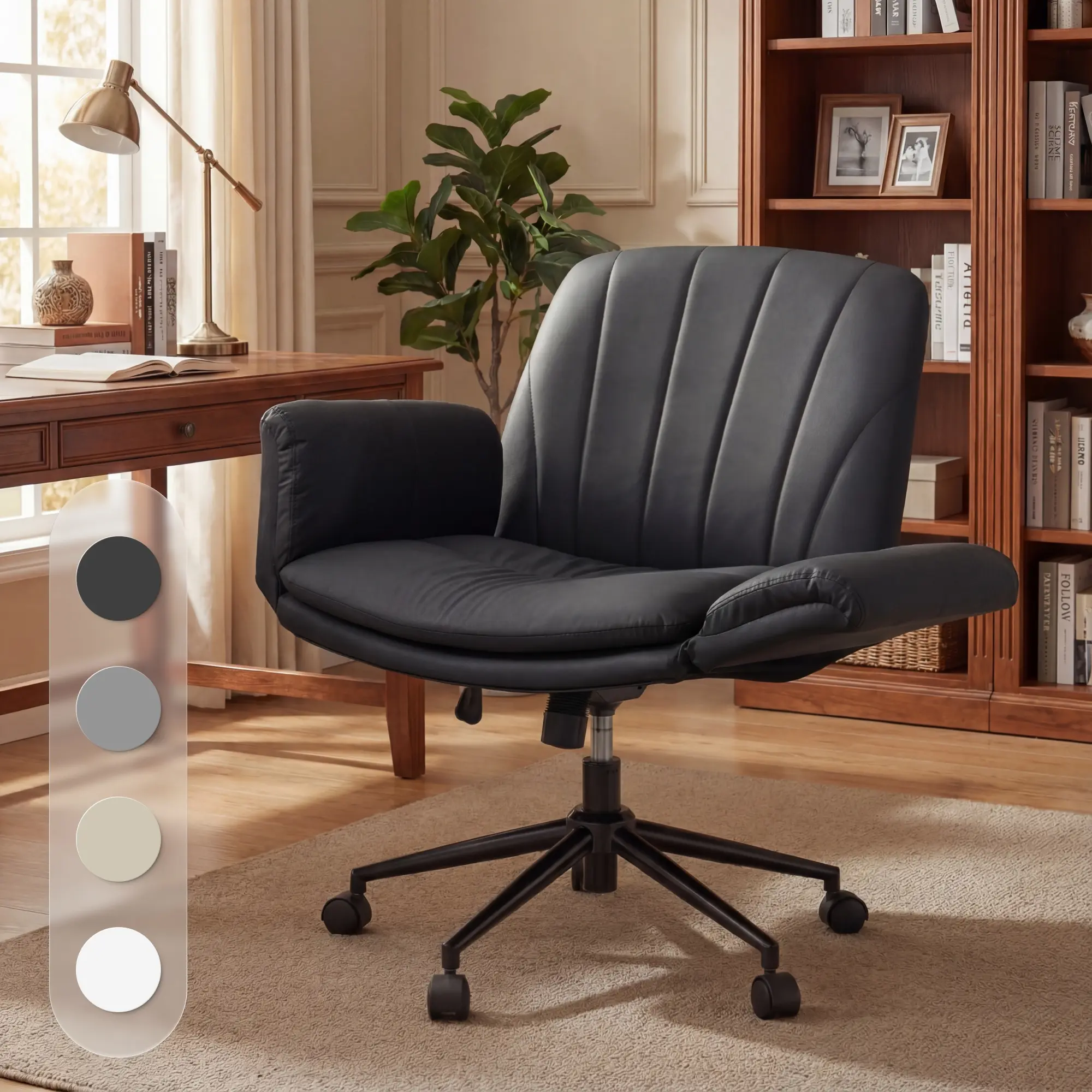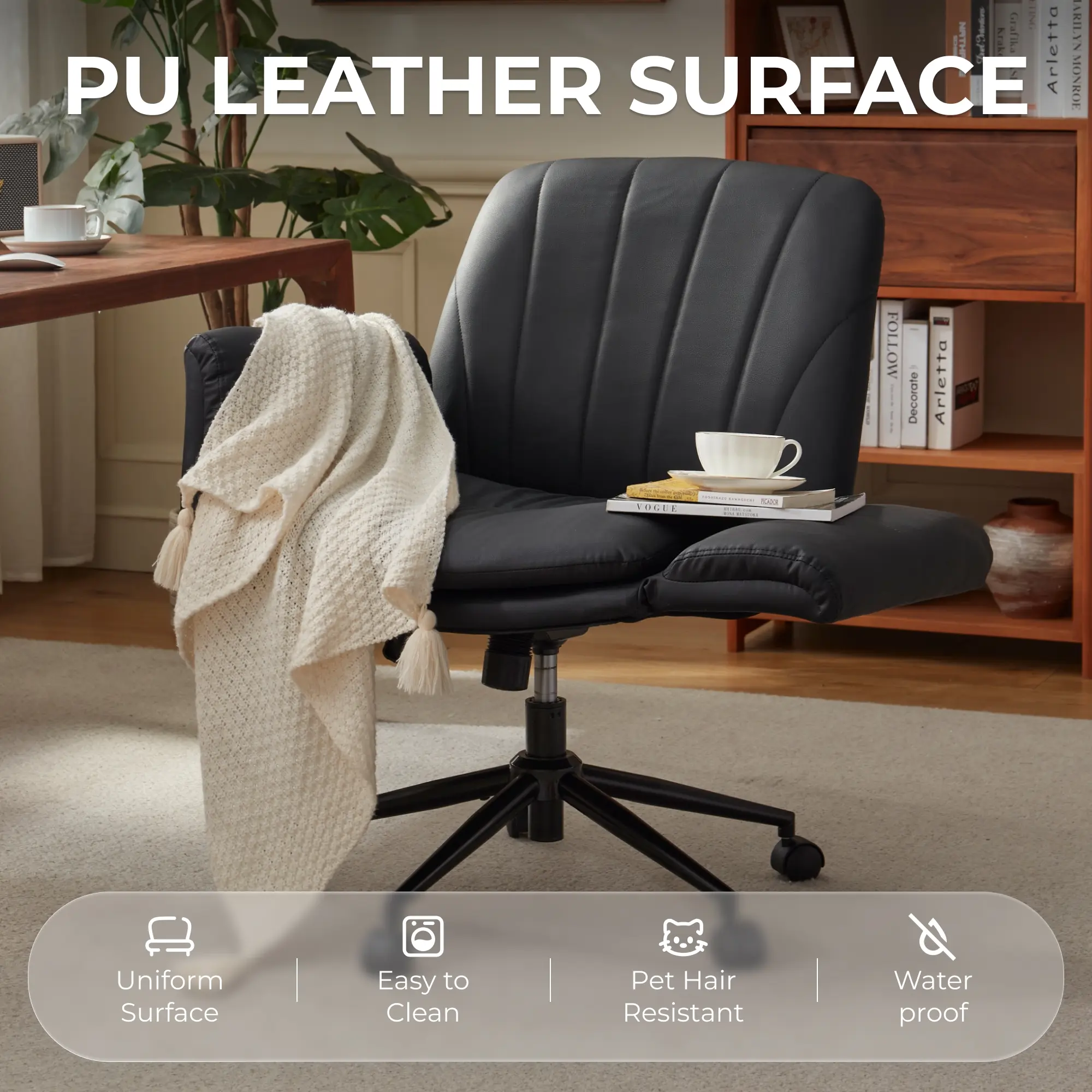 ·LUXURIOUS & DURABLE PREMIUM PU LEATHER- Upholstered in high-grade, eco-friendly PU leather, our criss cross desk chair offers exceptional softness and a sophisticated look. It’s meticulously crafted to be water-resistant, scratch-resistant (pet-friendly!), and incredibly easy to maintain – simply wipe clean to restore its pristine appearance year after year.