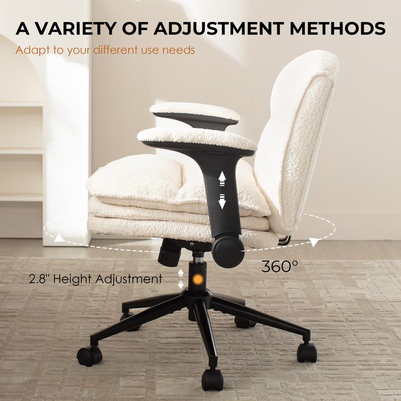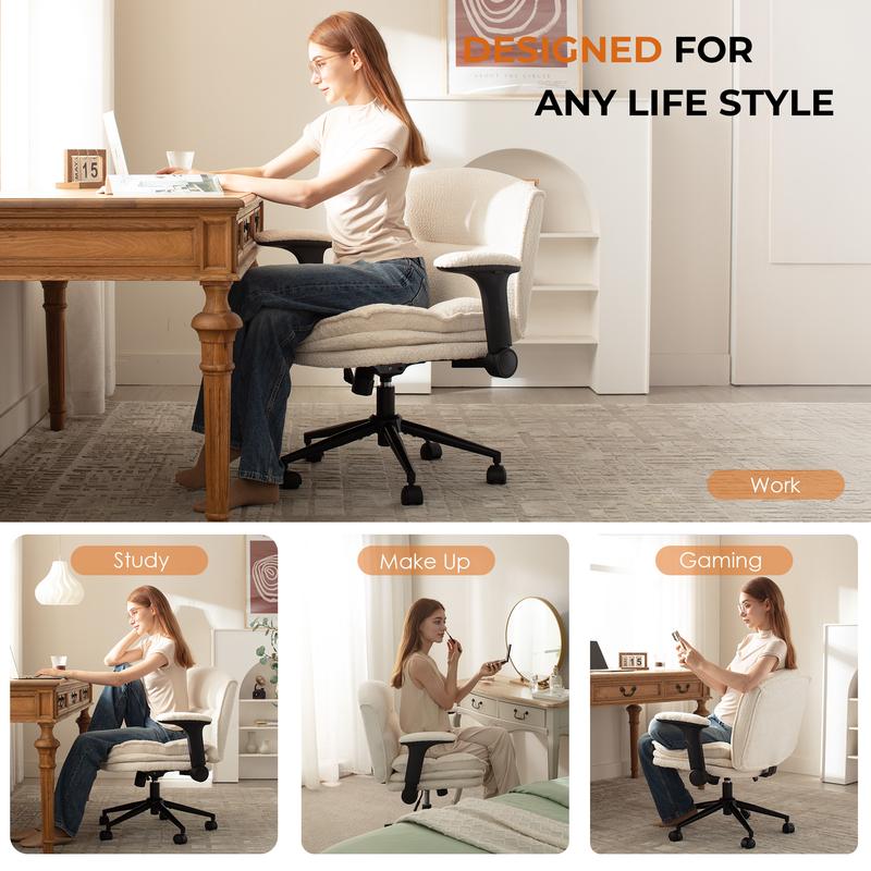 ·MULTI-FUNCTIONAL- This stylish appearance comfy computer chair provides height adjustment, 360°swivel and 90°-120° rocking tilt function, also equipped with a mute wheel, which moves smoothly. Suitable for any occasions such as working, studying, gaming, relaxing, makeup and meeting.