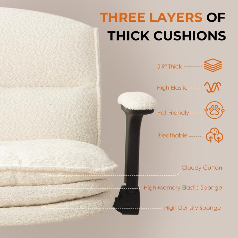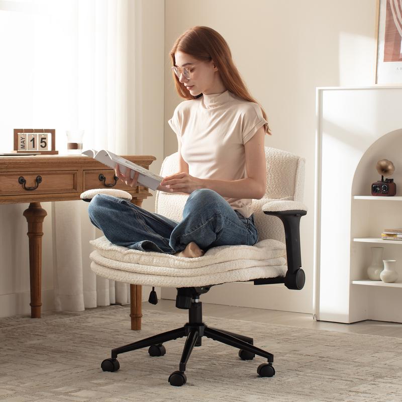 ·COMFORTABLE SITTING EXPERIENCE- The wide seat and 3layer 5.9'' thick elastic sponge cushion of bedroom chair bring a cloud-like sitting experience for both adults and kids. Besides, the premium fabric covering the work chair is soft and skin-friendly. Enjoy your own moment!