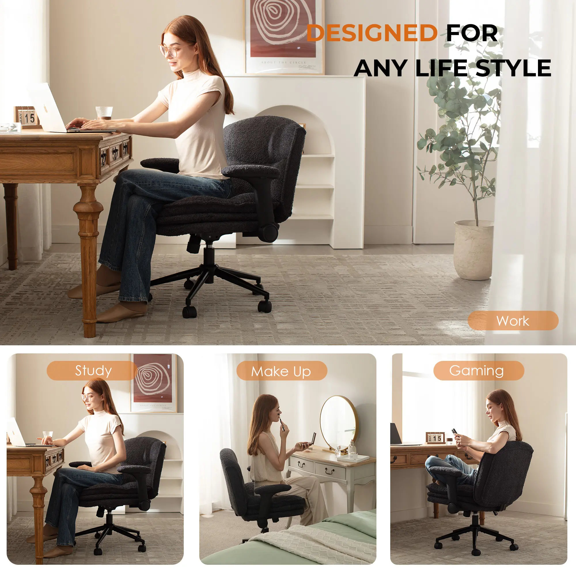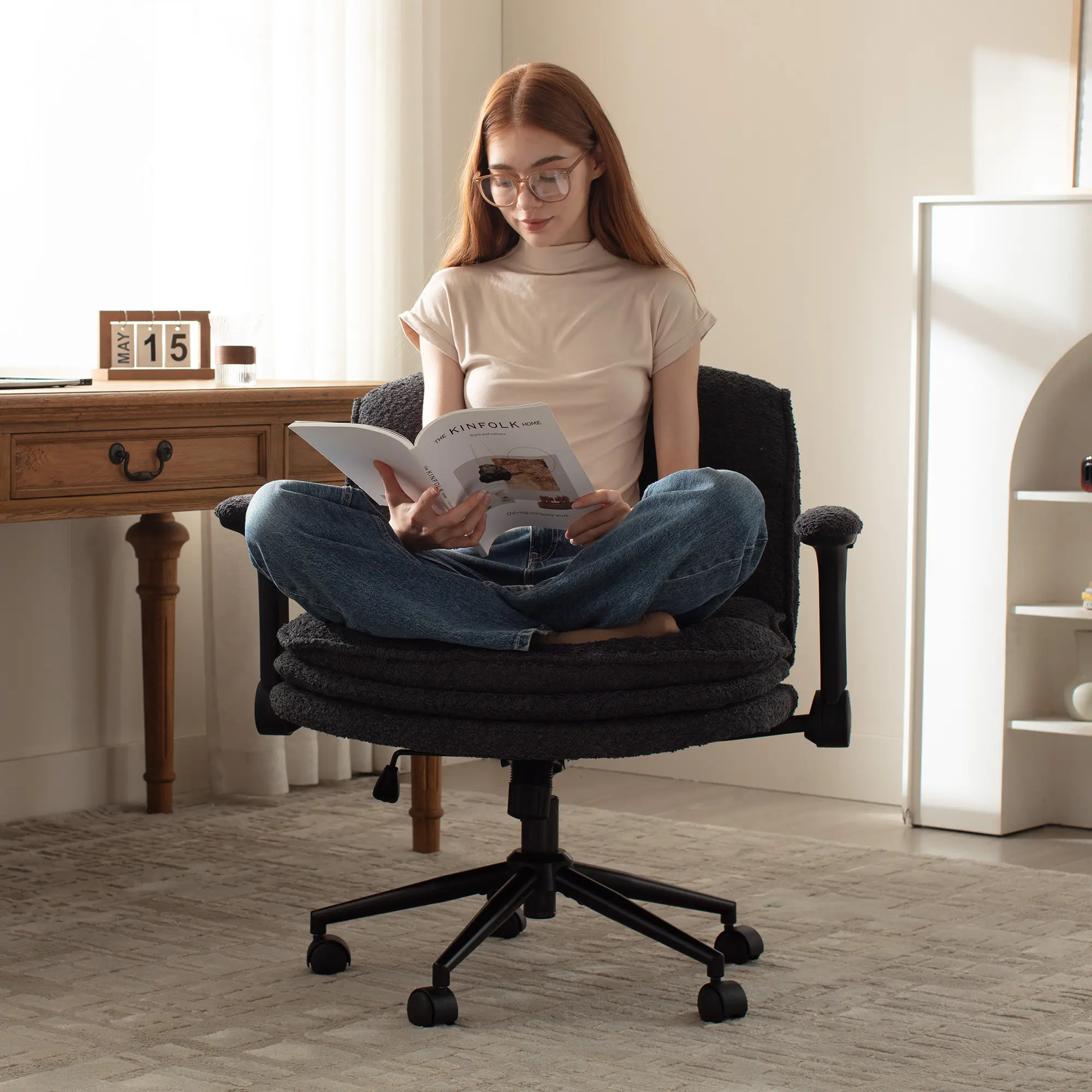 This chair is so comfortable, I love that I can sit a ton of different ways in it. As someone who shifts positions a lot while I work, it’s such a nice upgrade from my previous office chair. Easy to assemble too.