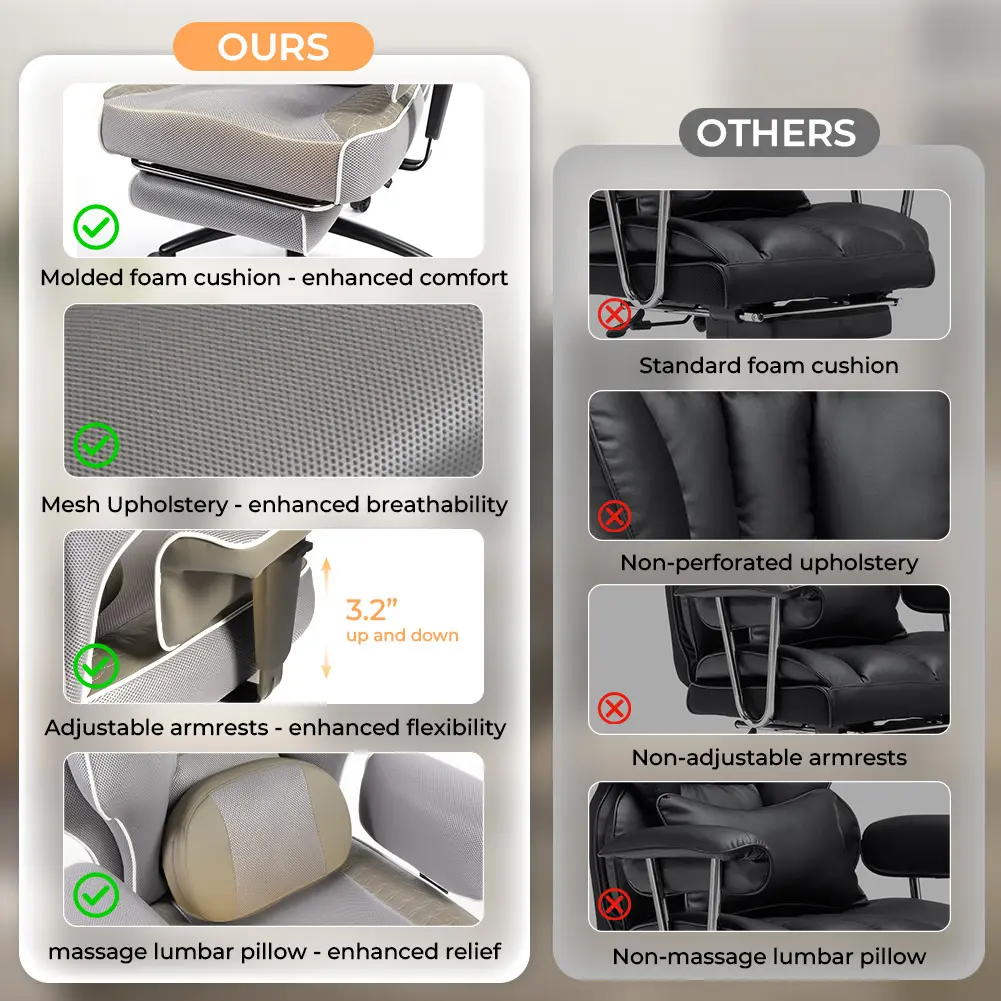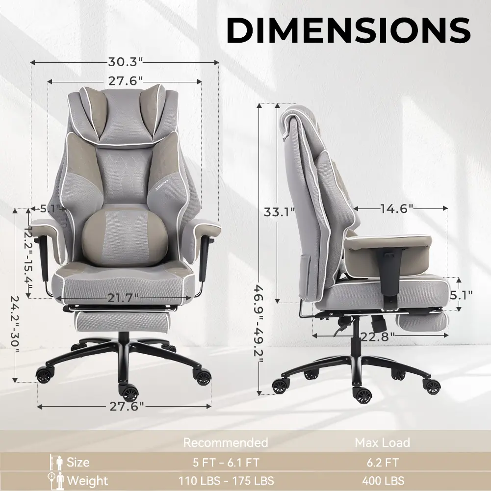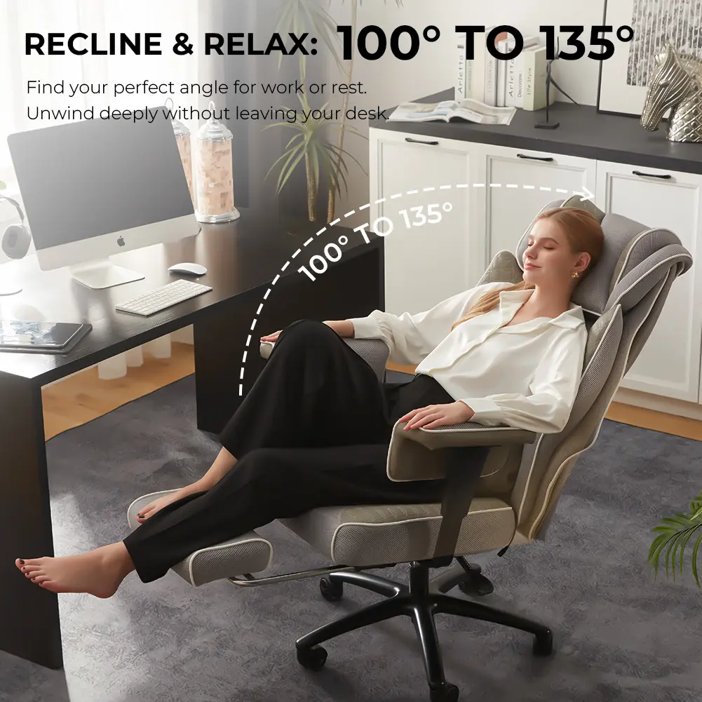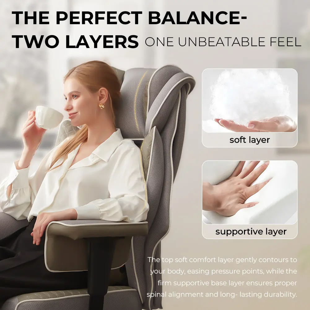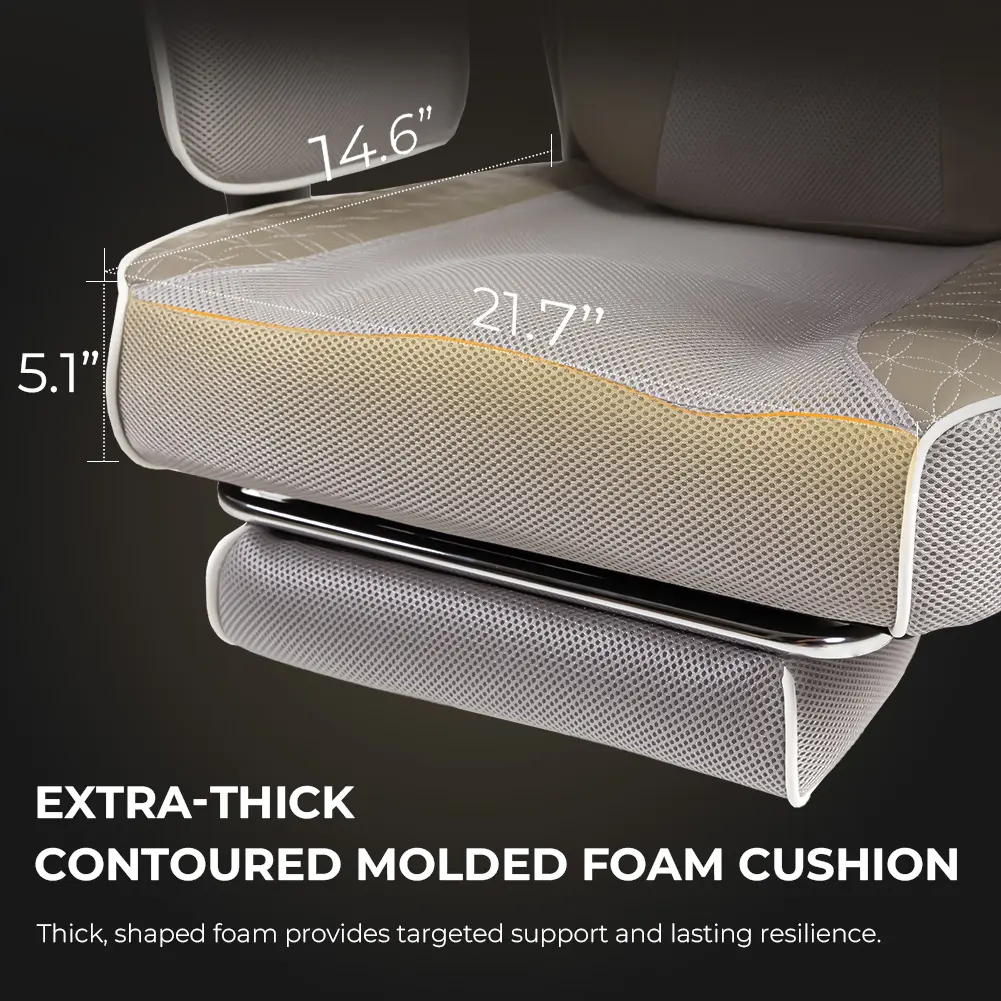 ·Luxuriously Spacious Seat:The seat cushion features a uniquely contoured shape that actively cradles your hips and thighs.Combined with its generously wide surface, it delivers unparalleled, all-day comfort tailored to your body's natural form