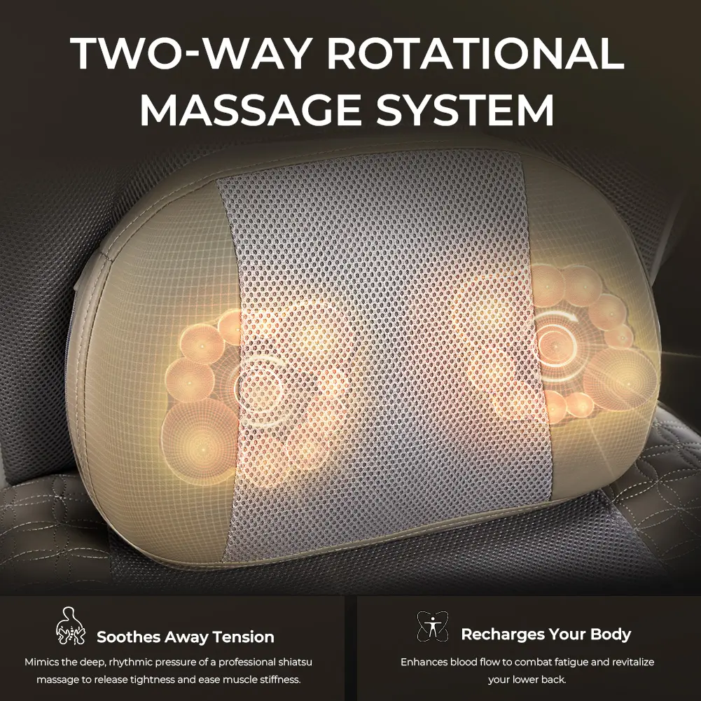 ·Dual-Rotation Massage System:This ingenious lumbar pillow offers both daily support and deep tissue massage. Keep the smooth side up for perfect ergonomic support while working. Feeling tight? Just flip it over! The massage side goes to work, delivering a powerful, bidirectional kneading action to your lower back, turning any chair into a relaxation throne